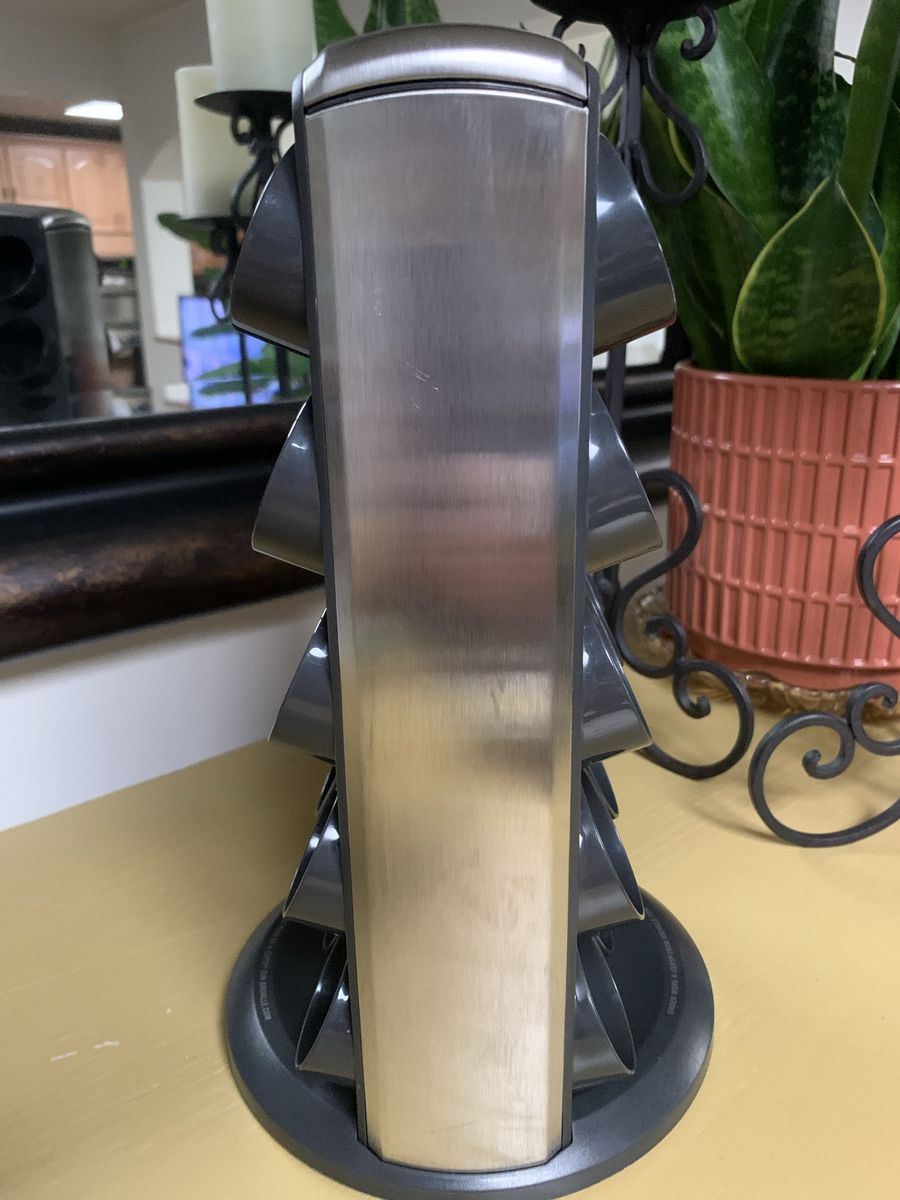 VenmoHolds 30 K-Cup pods. Not only functional but pretty. 11 3/4”H x 6 3/4”W. Spins. Clean Venmo to hold. Non-smoking/No pet home.