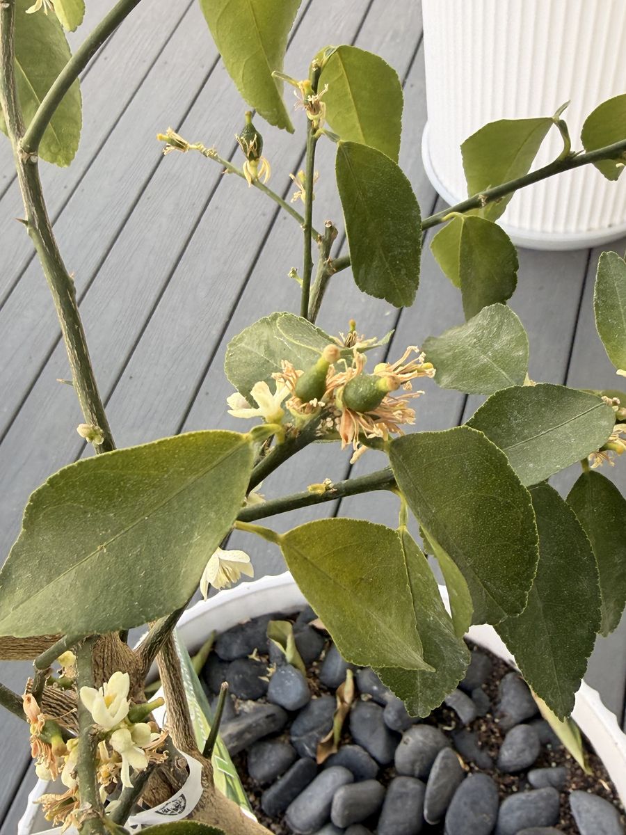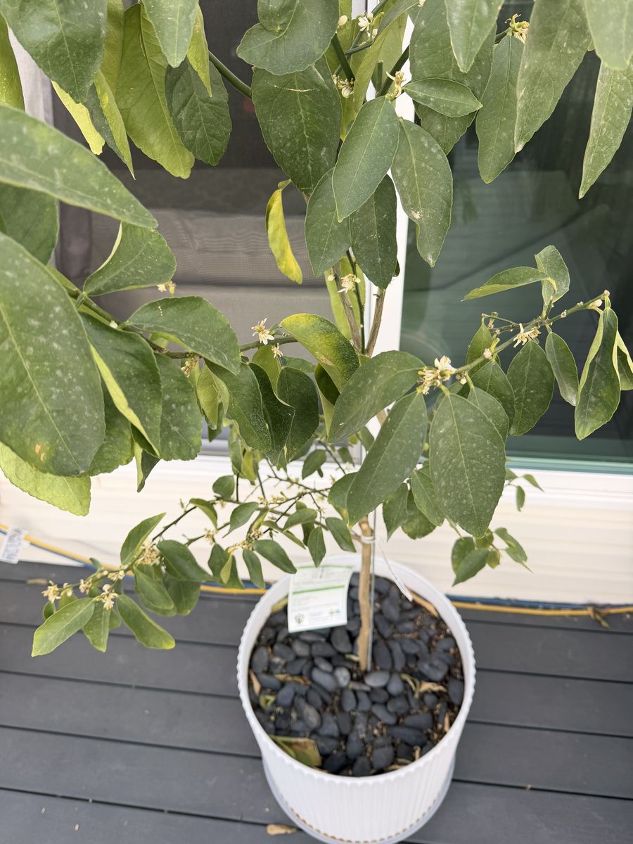 VenmoBeautiful potted lime tree for sale in a large decorative white planter. This tree is flowering with small lemons currently growing.