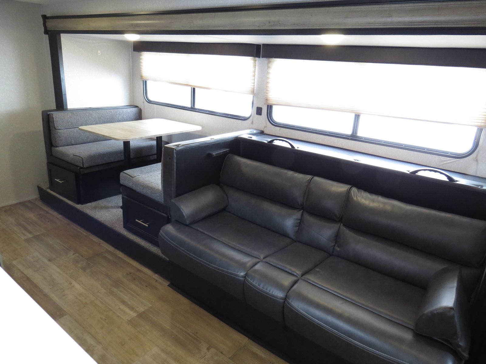 BIG SLIDE!, Solar, Front Queen Bed, BIG dinette & Couch Slide Out, Side kitchen, Booth Dinette & Couch make down to beds, Corner rear Bathroom, Electric Patio Awning, Bathroom, A/C unit and Heat.