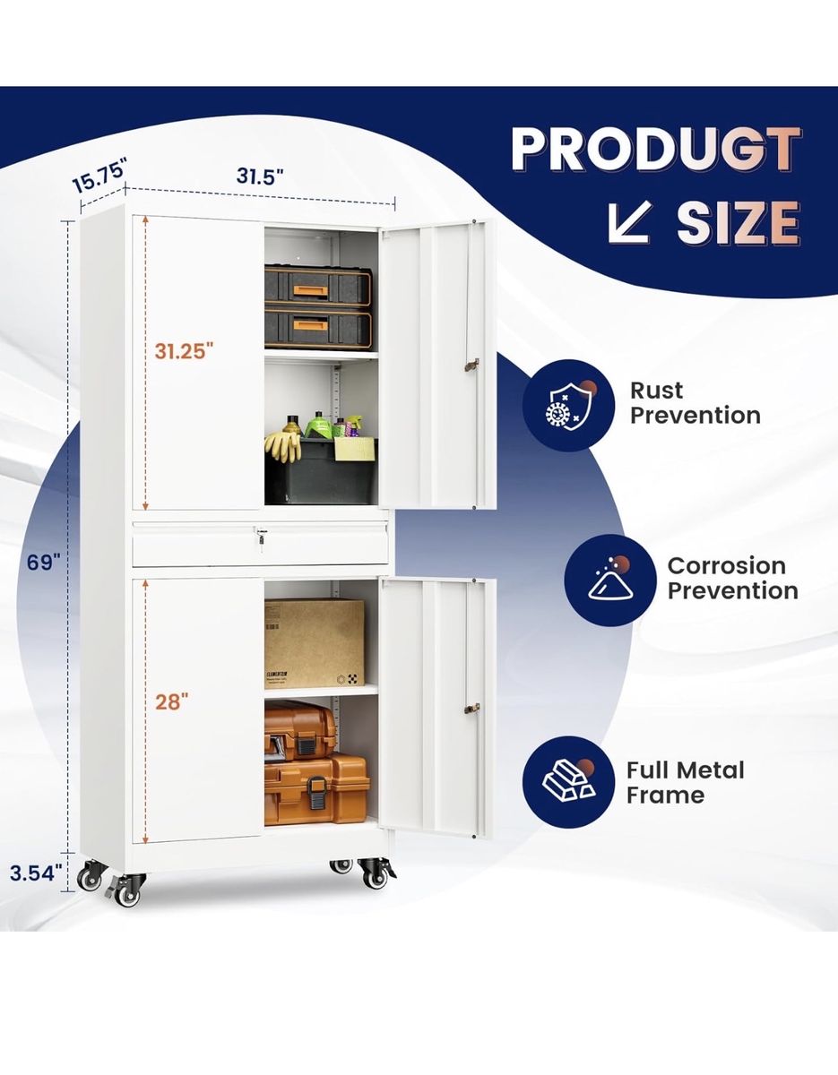 VenmoMetal Garage Storage Cabinet with Locking Doors and Adjustable Shelves, 73" Rolling Tool Storage Cabinet
