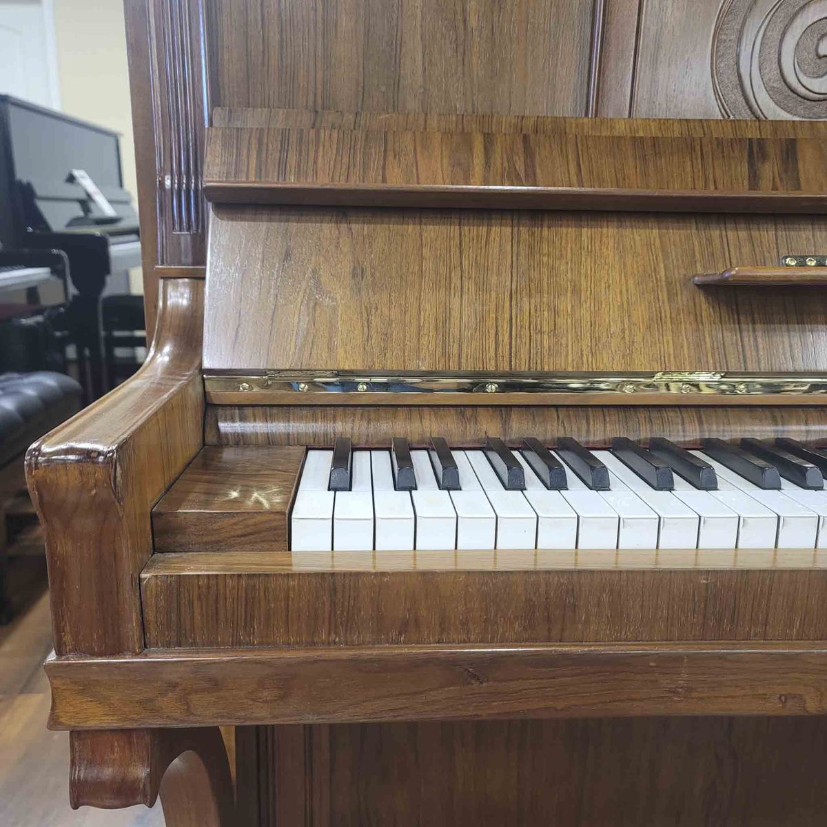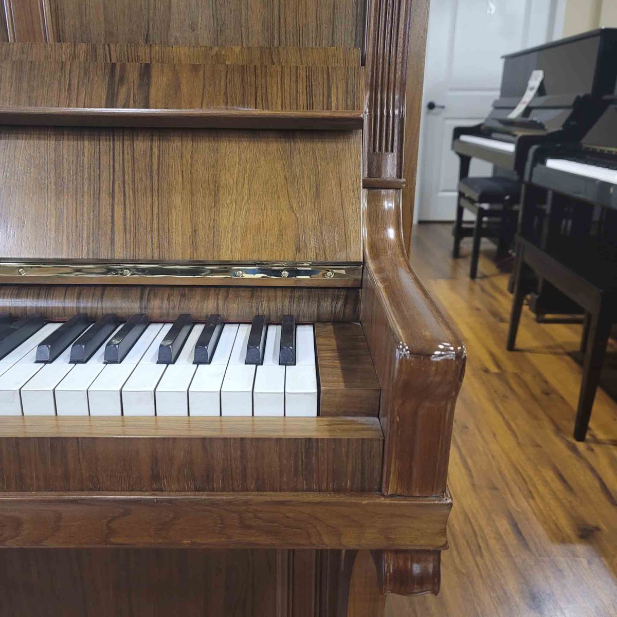 At 49", this piano has longer strings and a larger soundboard, which gives you a deeper bass and more overall presence. It’s a noticeable step up from the smaller uprights you’ll typically find.