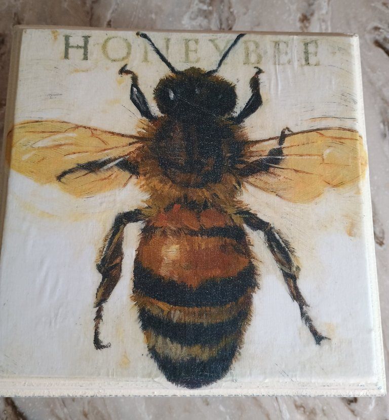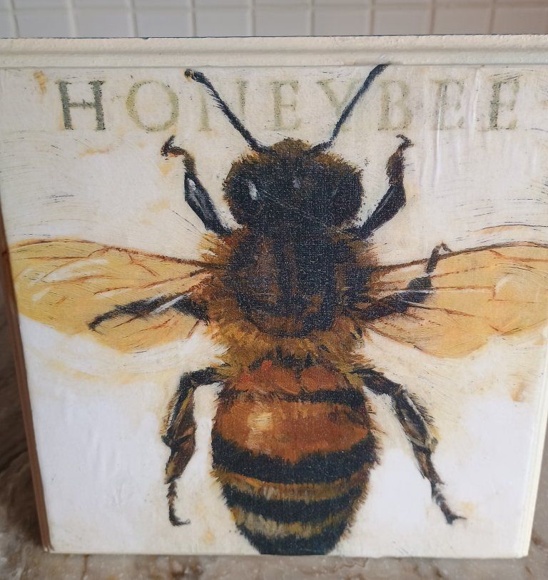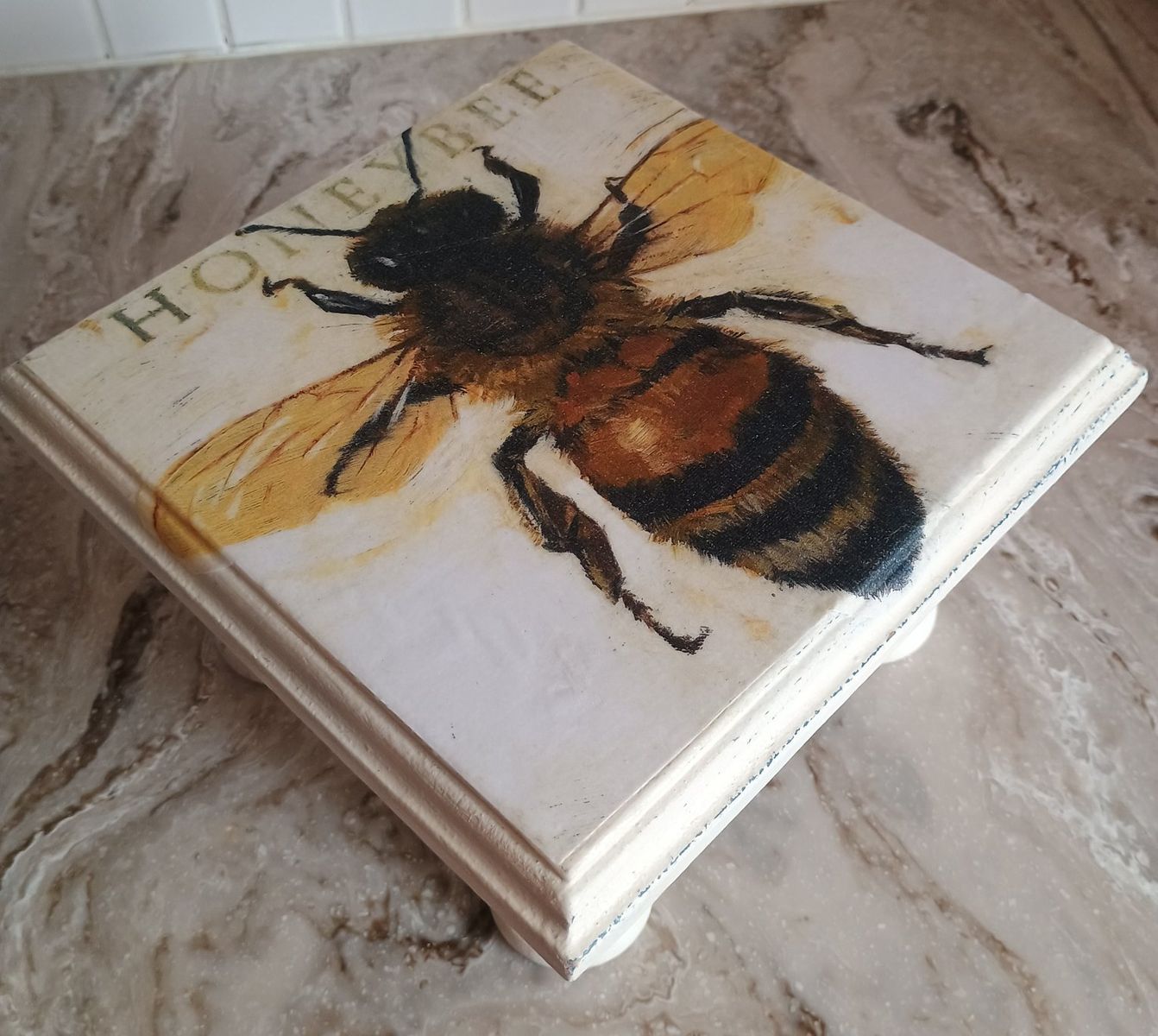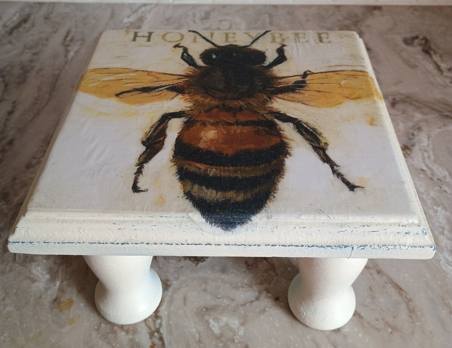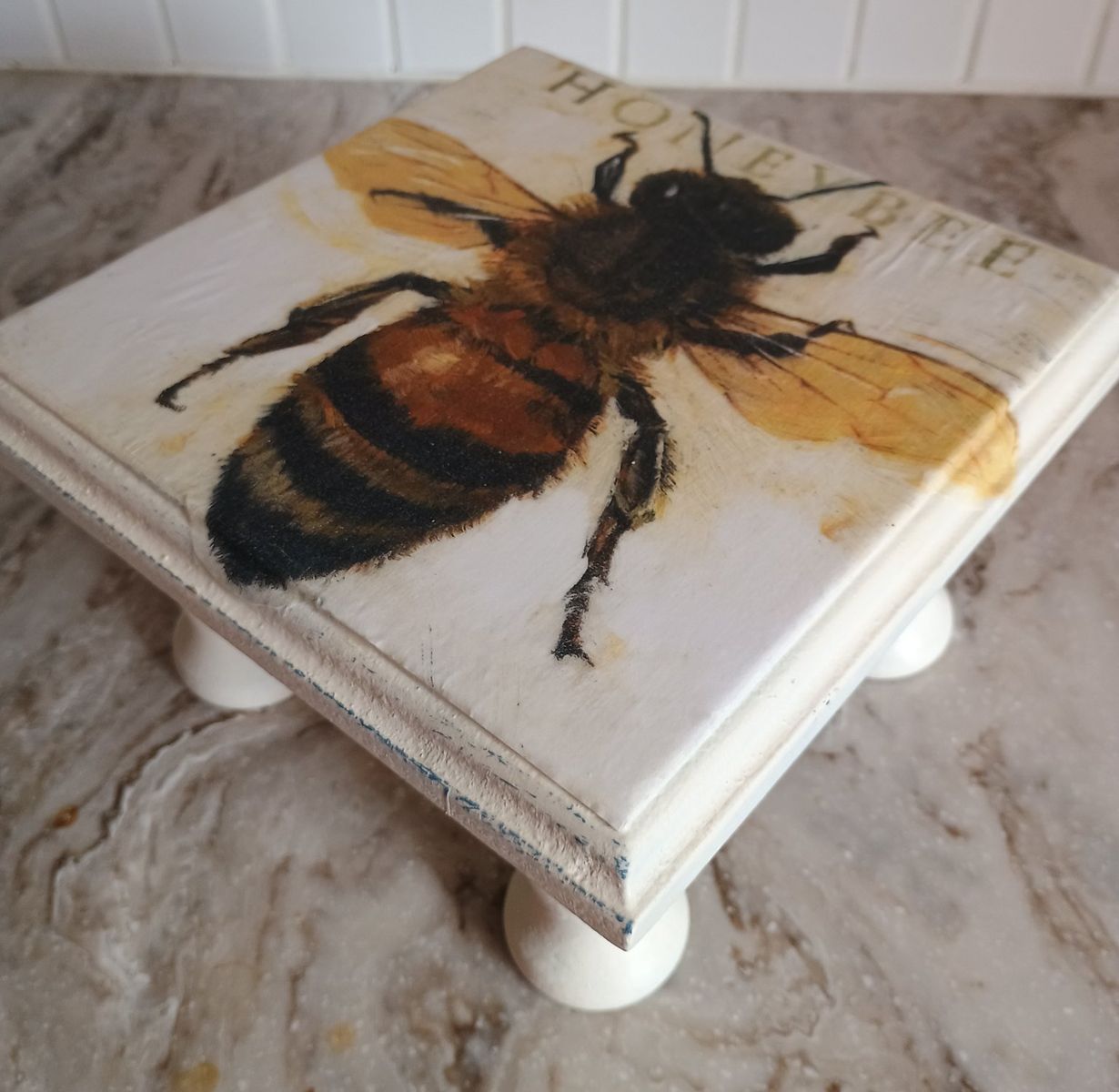 VenmoDecorative Bee Stand. Wood, decopauged. Stand measures 8" X 8", 4" tall. Smoke and pet free home
