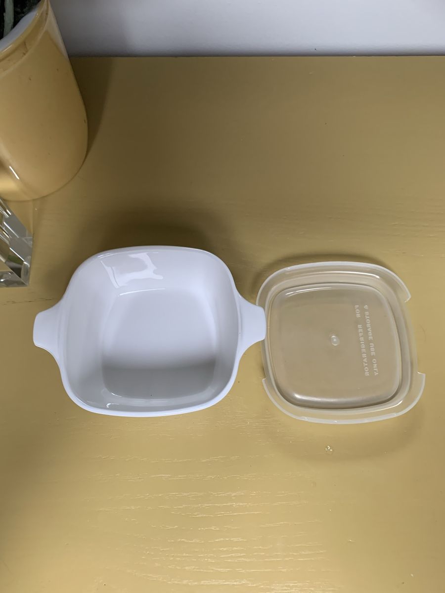 VenmoVintage made in USA dish from the “Spice of Life" collection of the 70’s. The dish hold 2 3/4 cups. The lid is plastic and intended for refrigerator/storage use only. No chips or cracks. Lid has not yellowed from age. Clean. Venmo to hold. Non-smoking/No pet home.