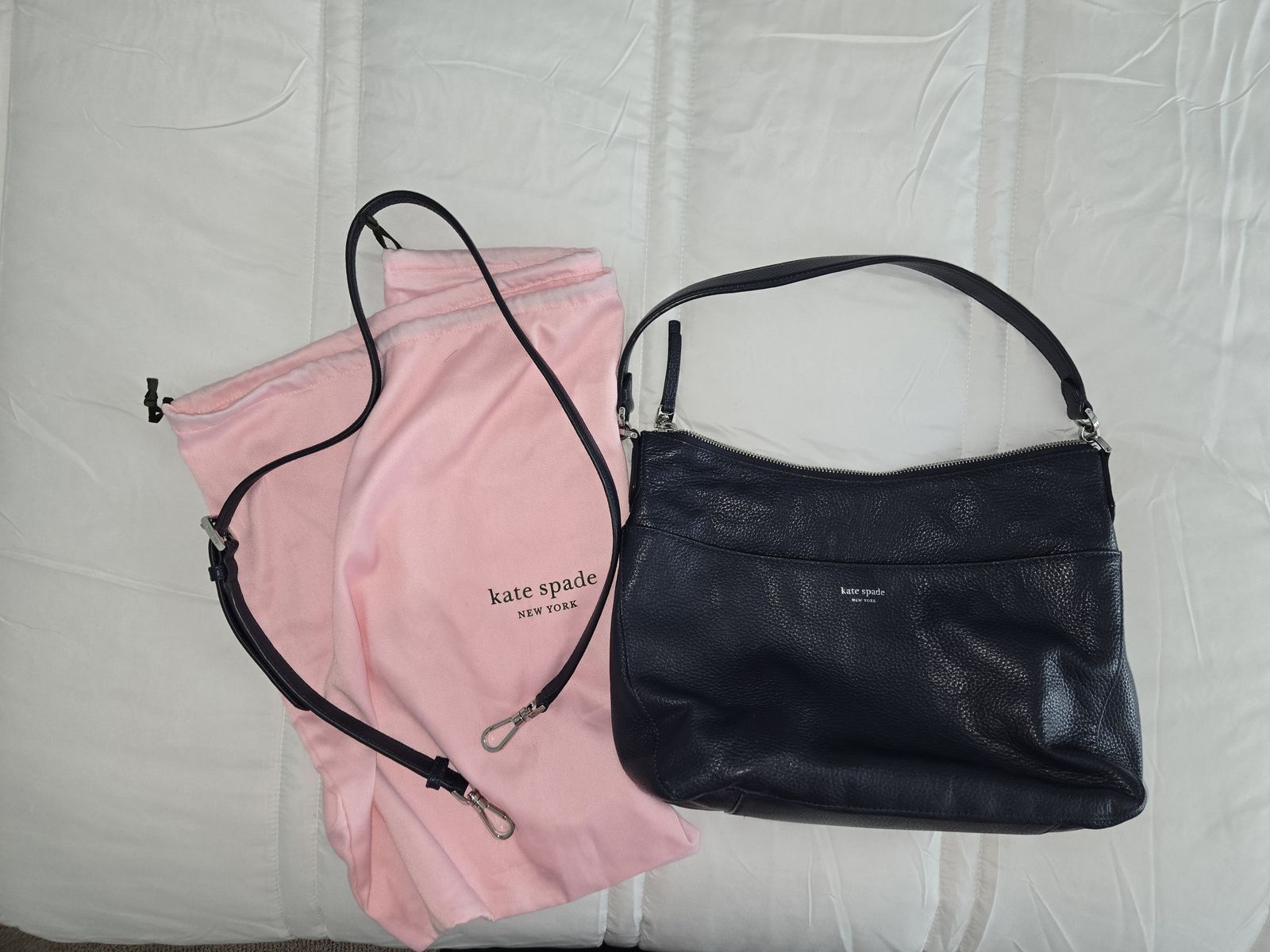 Leather Kate Spade purse. Excellent condition. 13 inches wide 9 inches tall 4 inches wide. Comes with dust bag and additional longer handle. Cottonwood Heights area. Text 801.557.1742