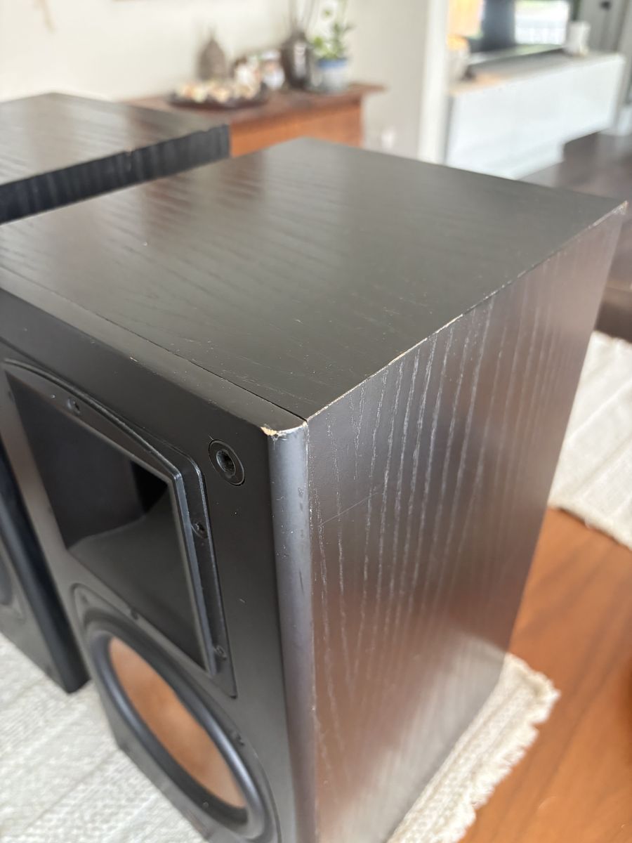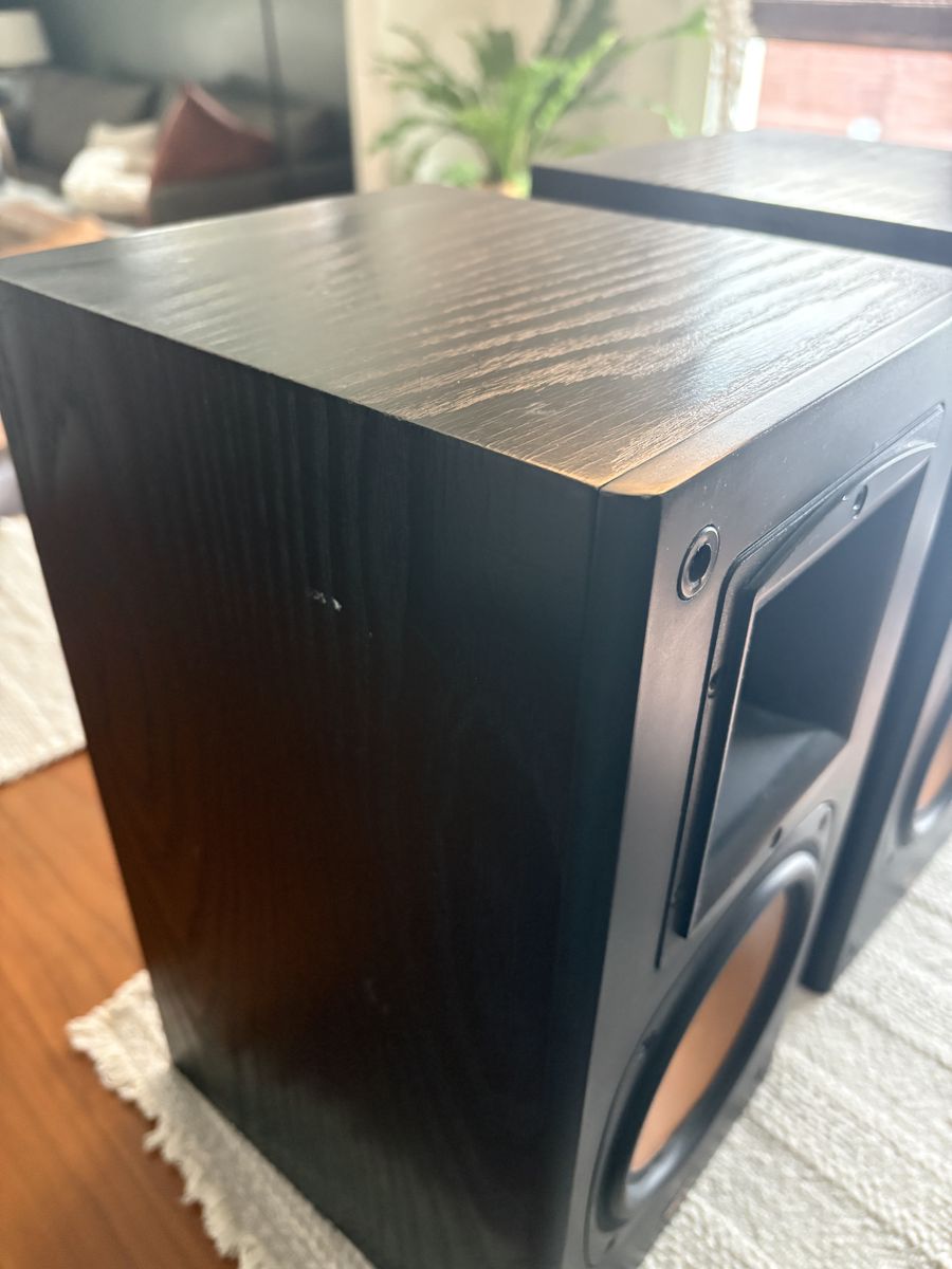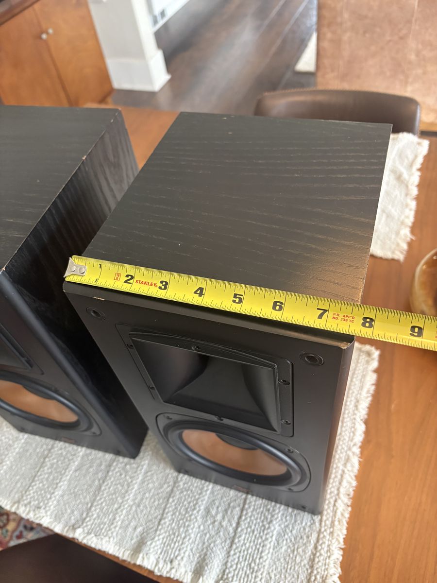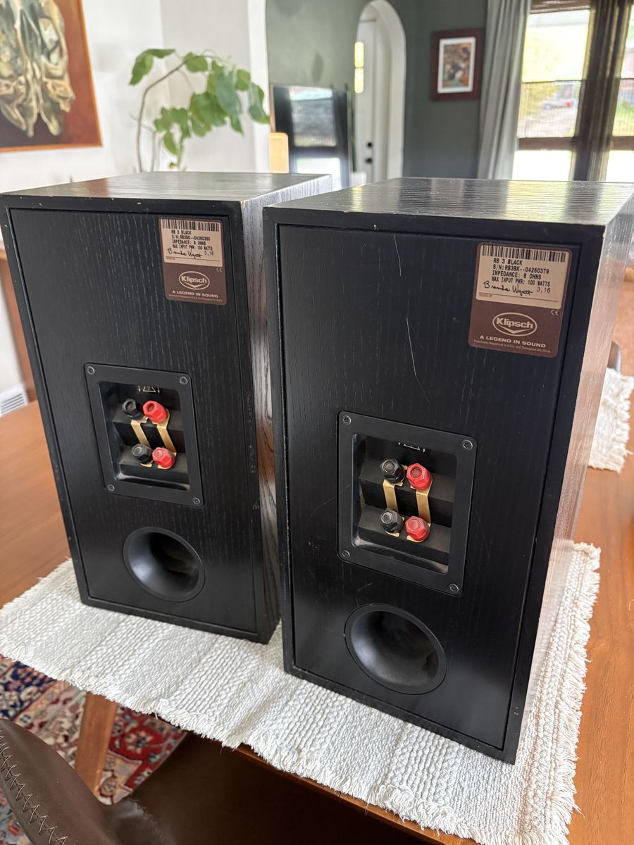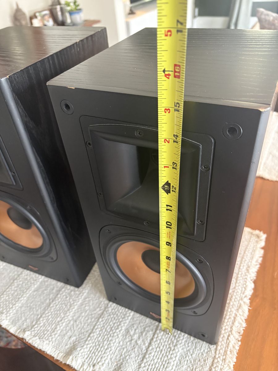PayPalFor sale is a wonderful set of Klipsch large bookshelf speakers, I’ve owned these speakers for a long time and they sound absolutely wonderful. They are missing the grills. I tried to picture some of the scuffs and wear. These speakers still sound great and were very expensive new. Made in the USA see pictures for condition and measurements.