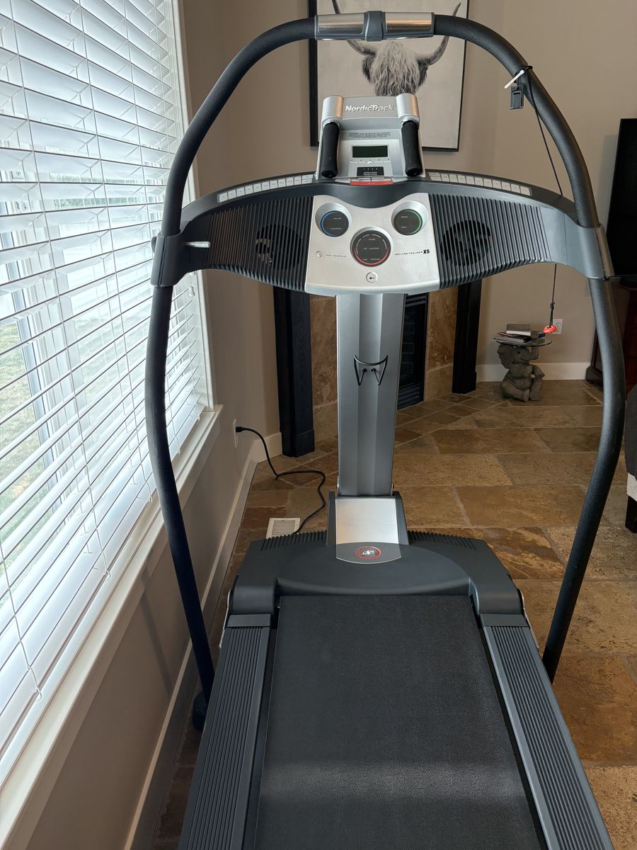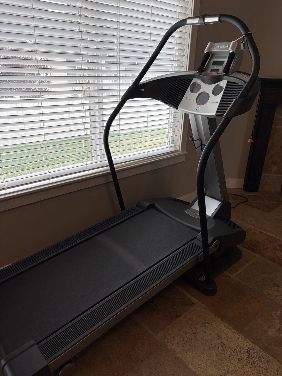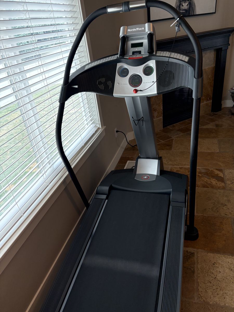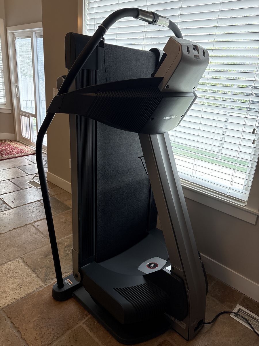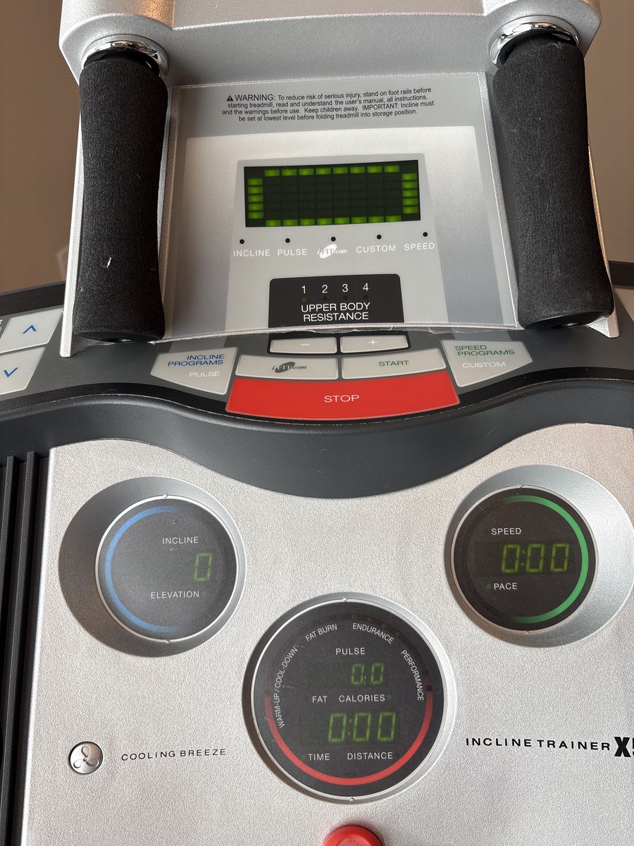 Incline trainer with multiple programs, upper body resistance, bottle holder and fans. Very sturdy machine. Folds easily for storage and can be disassembled in a few steps for lighter transport and set up.