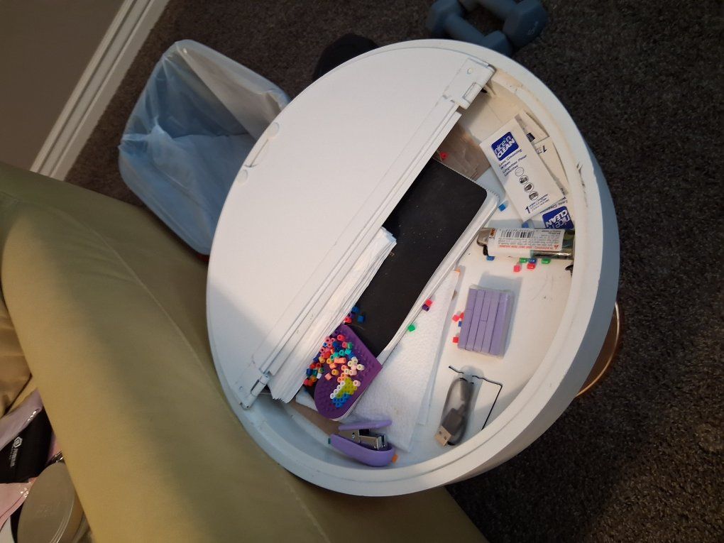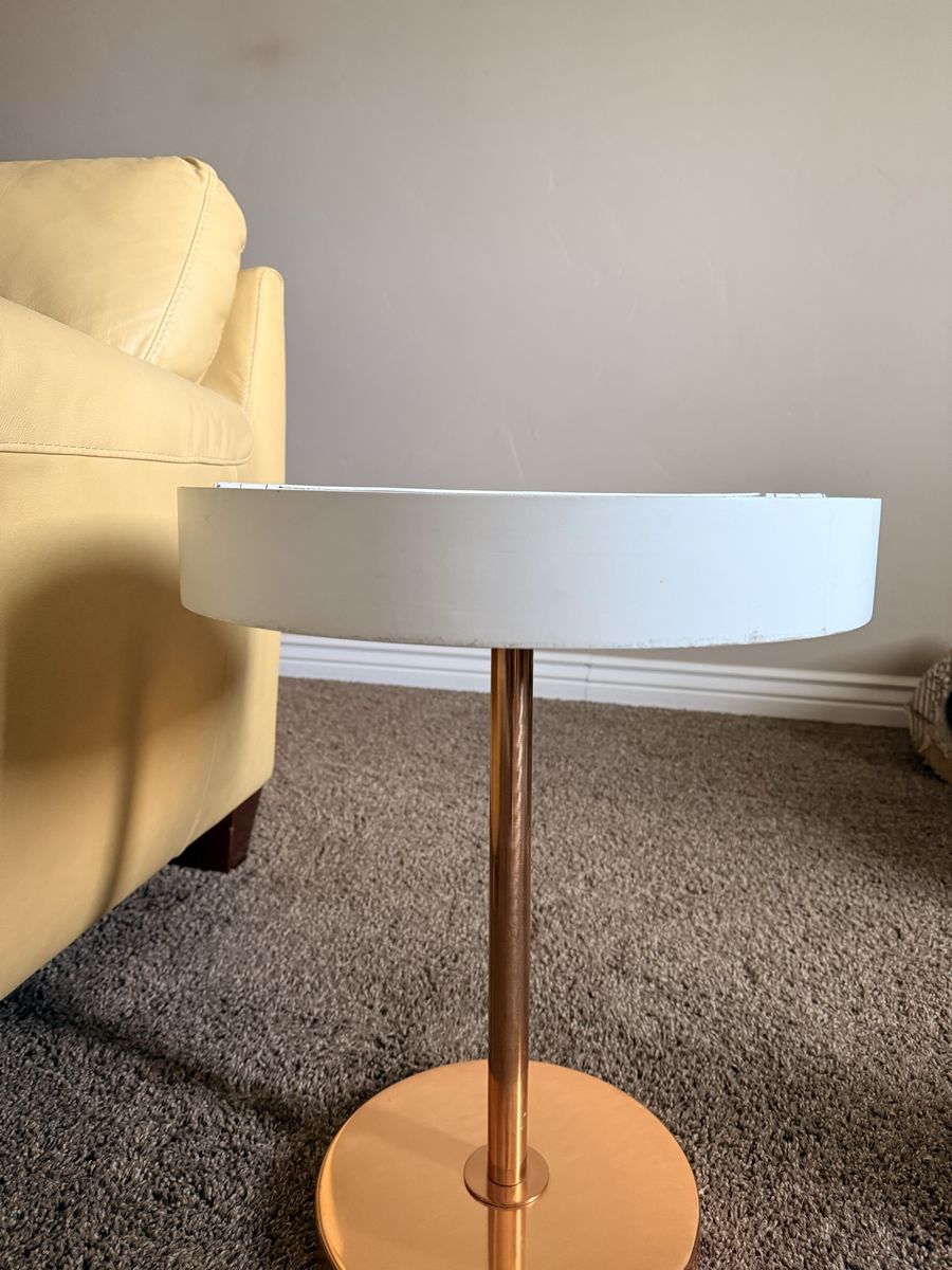 VenmoCute little end table that's all steel & the top opens for storage. $35 OBO.