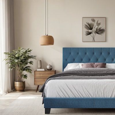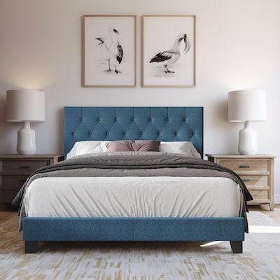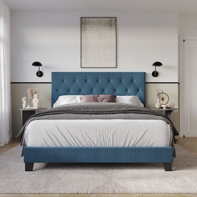 Home Design King Denim Blue Wood Tufted Panel Bed with Headboard