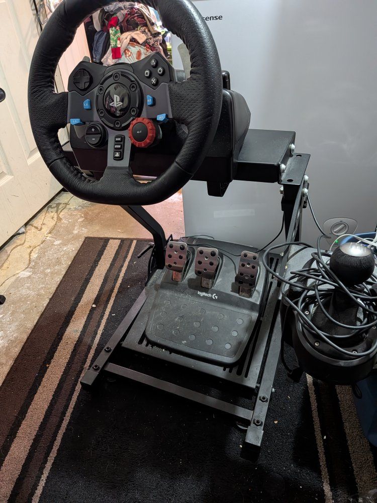 Logitech G29 Wheel & pedal set with shifter add-on includes stand. Everything is functional. PS4/PS5, PC, MAC