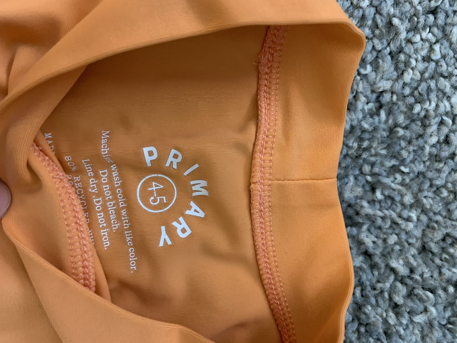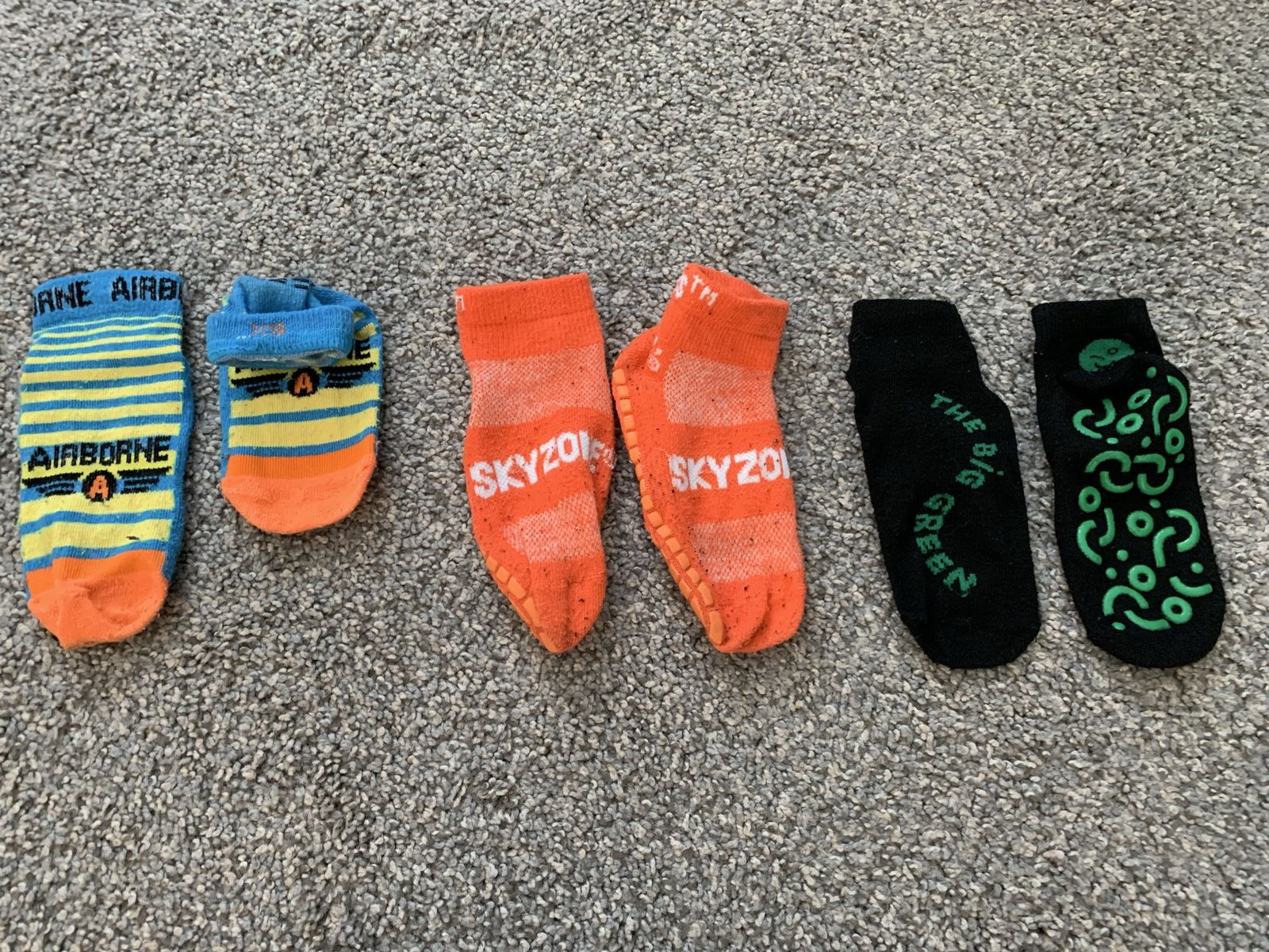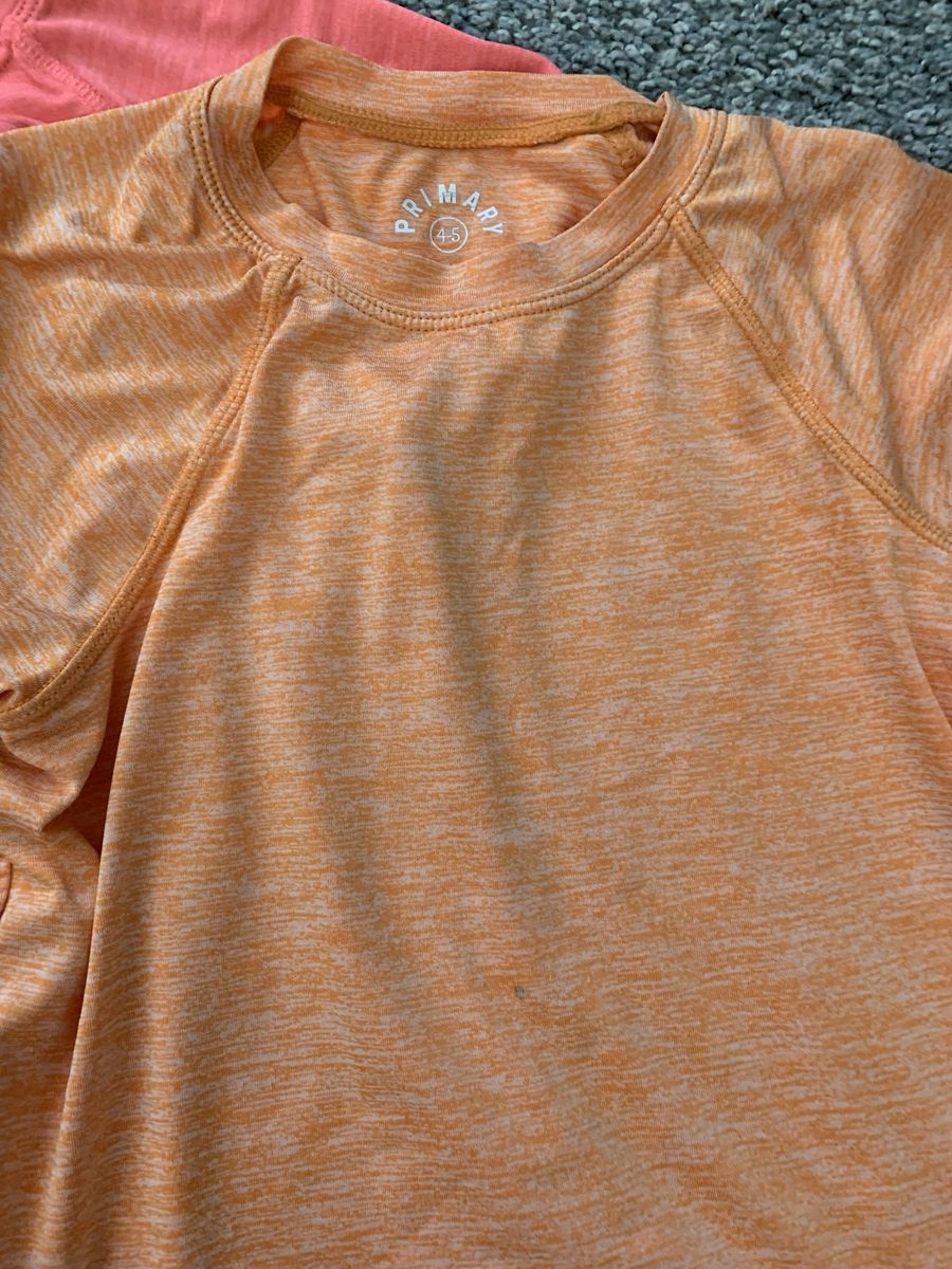 Primary (and others) brand clothing sizes 4-5, see clothing for condition. Only the rainbow shorts and orange t-shirt have more wear and tear. Socks for trampoline/playgrounds aren’t sized, but fit that age.