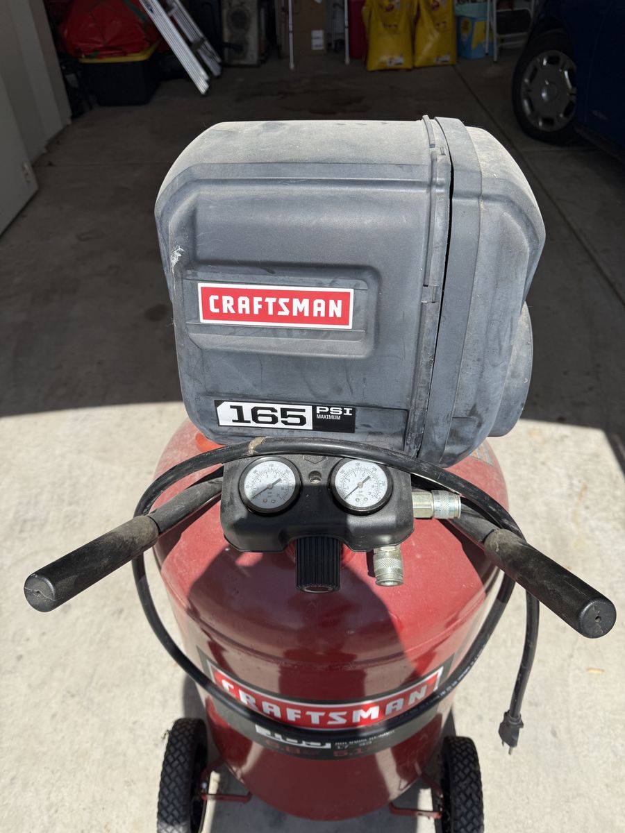 VenmoOlder Craftsman Air Compressor. Works just fine. Has a small leak from the air compressor to the tank (fixed with a rubber air hose). $50 obo