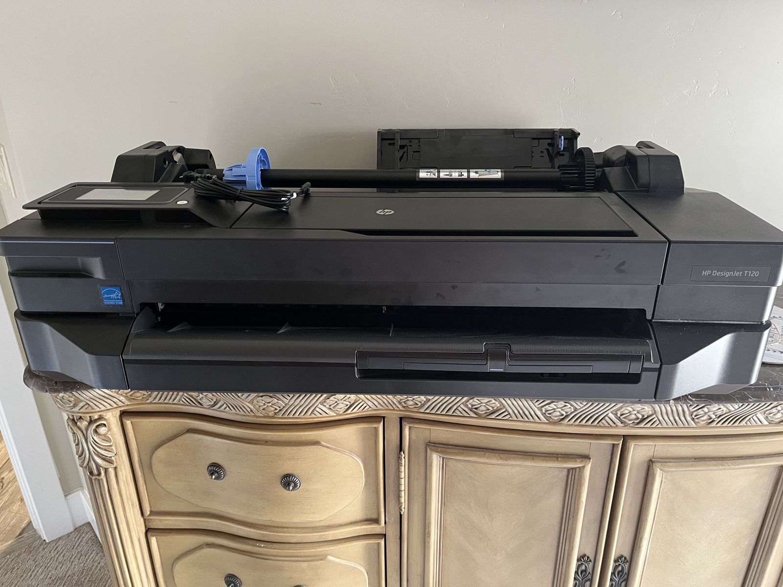 VenmoUsed T120 plotter. Excelent condition. No scratches or blemishes. New print heads installed recently. Has HP ink cartridges installed that are almost full.