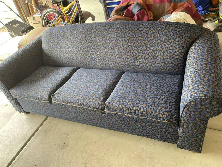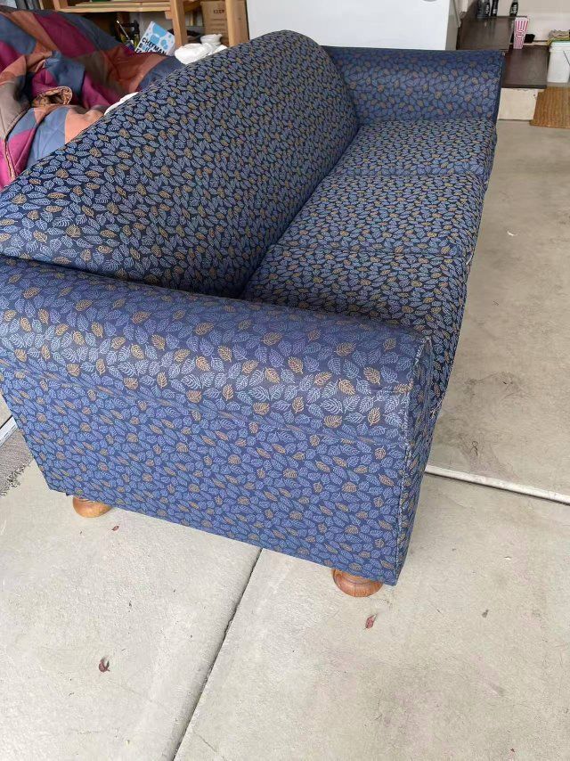 A noble blue, paired with flowing gold and silver leaves. Like a late autumn night, tranquil and warmly comforting. Professionally cleaned. After cleaning, protect it with a sofa cover. $130 cash.