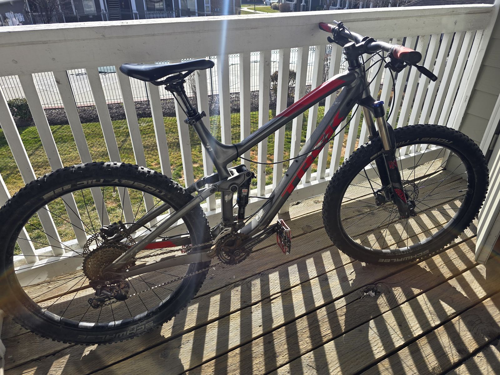 Selling my Trek Fuel EX 5 full-suspension mountain bike. ,I bought it new in 2020 I believe and rode a couple times a month for a year or two, but havn't riden since and stored in a garage. it has some cosmetic wear from use, in addition it will need a tune up. on the plus side it is a full suspension i am willing to get rid of under price of me fixing it up myself.