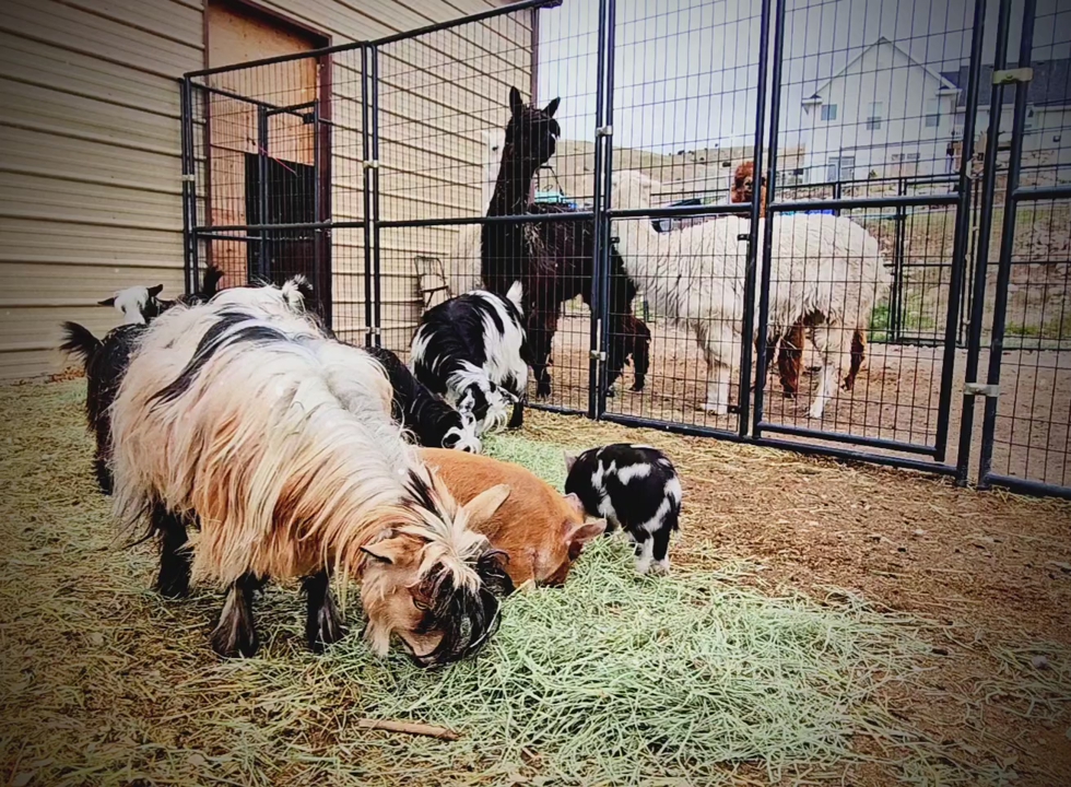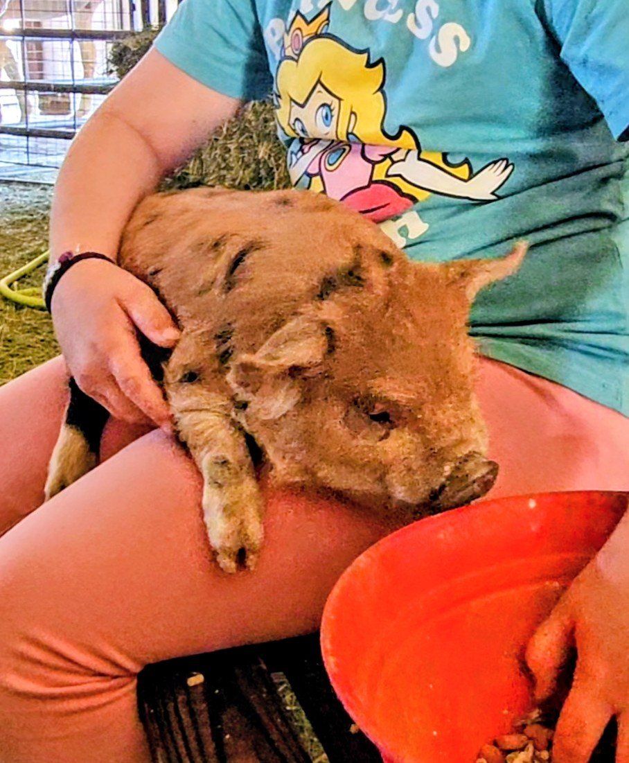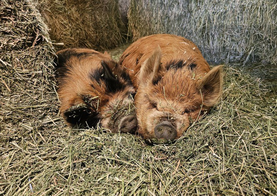 VenmoHappy Feet & Freckles are 1 year old. They're 2 of the cutest pigs you'll ever meet. They were bottle fed babies and grew up with mini fainting silky goats. They have an identity crisis (they think the little goats are siblings :)