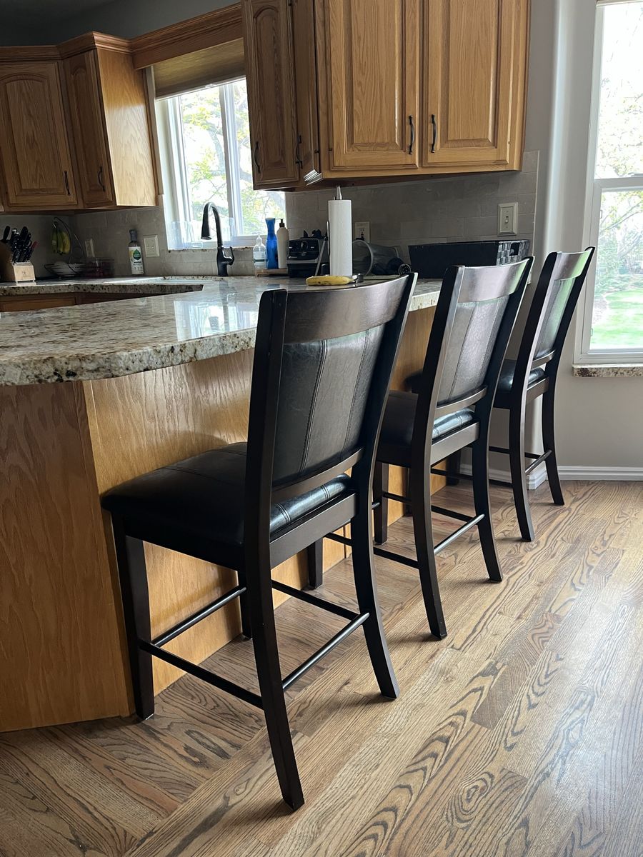Venmo3 counter height stools in really good conditon. The seat is 24", the back is 41". They only have a few tiny scratches on the legs that could be fixed with a furniture marker. $100 for all 3. Cash or Venmo only.