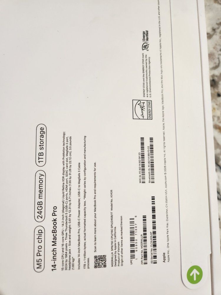 Venmonew in unopened box. mac book pro 14" with M5 pro chip and 1TB HD. Dave a couple hundred bucks and some tax.