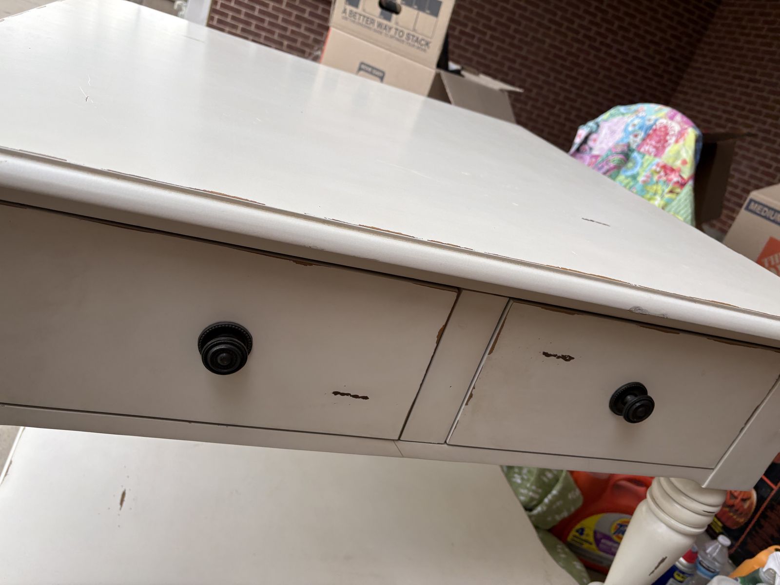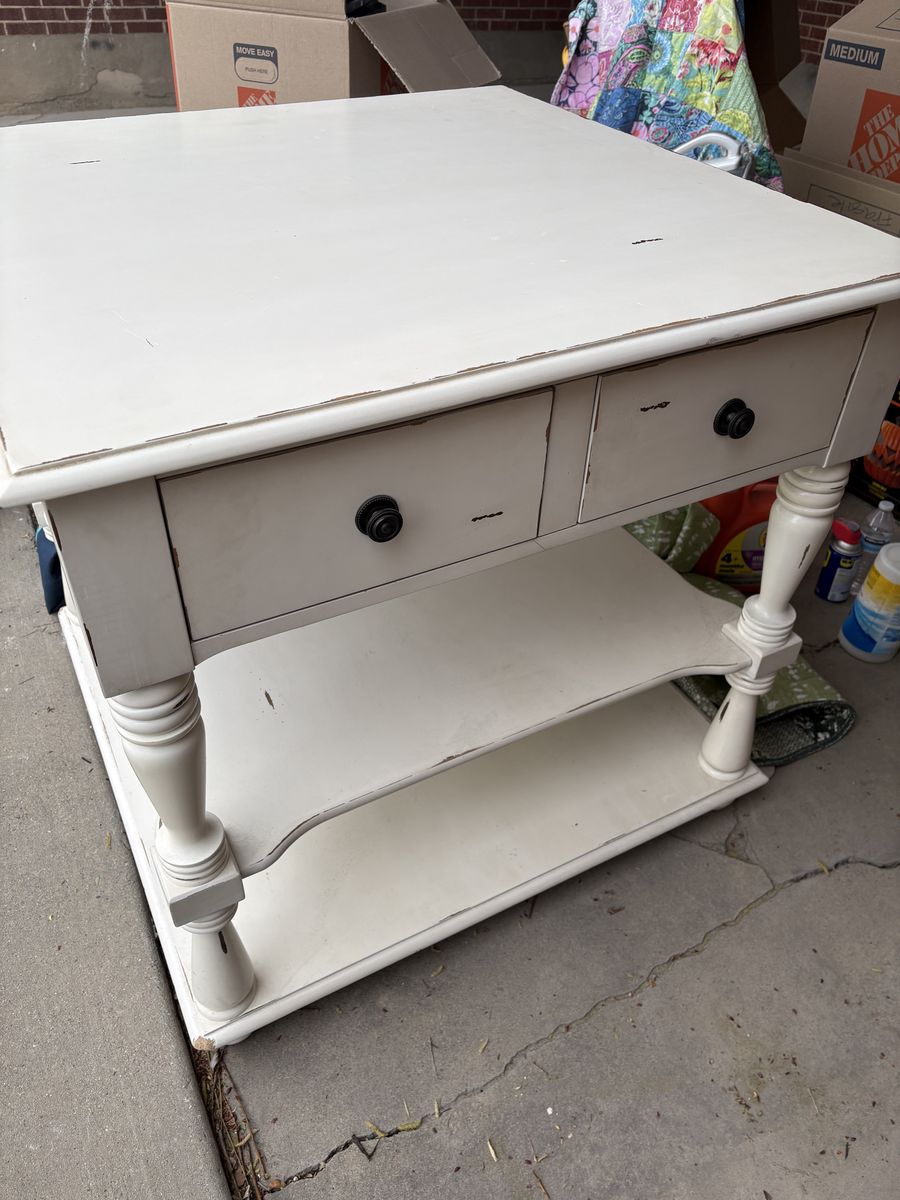 VenmoKitchen island Damaged two corners puppy chewed on very end of table corners. 36 x 36 square x 36 high very solid and sturdy Can be slightly taken apart to fit in doorway Must pickup tonight. Needed it moved tonight between 6:30 and 7:30 pm. Priced to sell with limited hours to pickup in Riverton. Moving tonight otherwise will go to storage and I will keep and refinish. Bought right before Covid Shutdown. I think it was around $800.00.