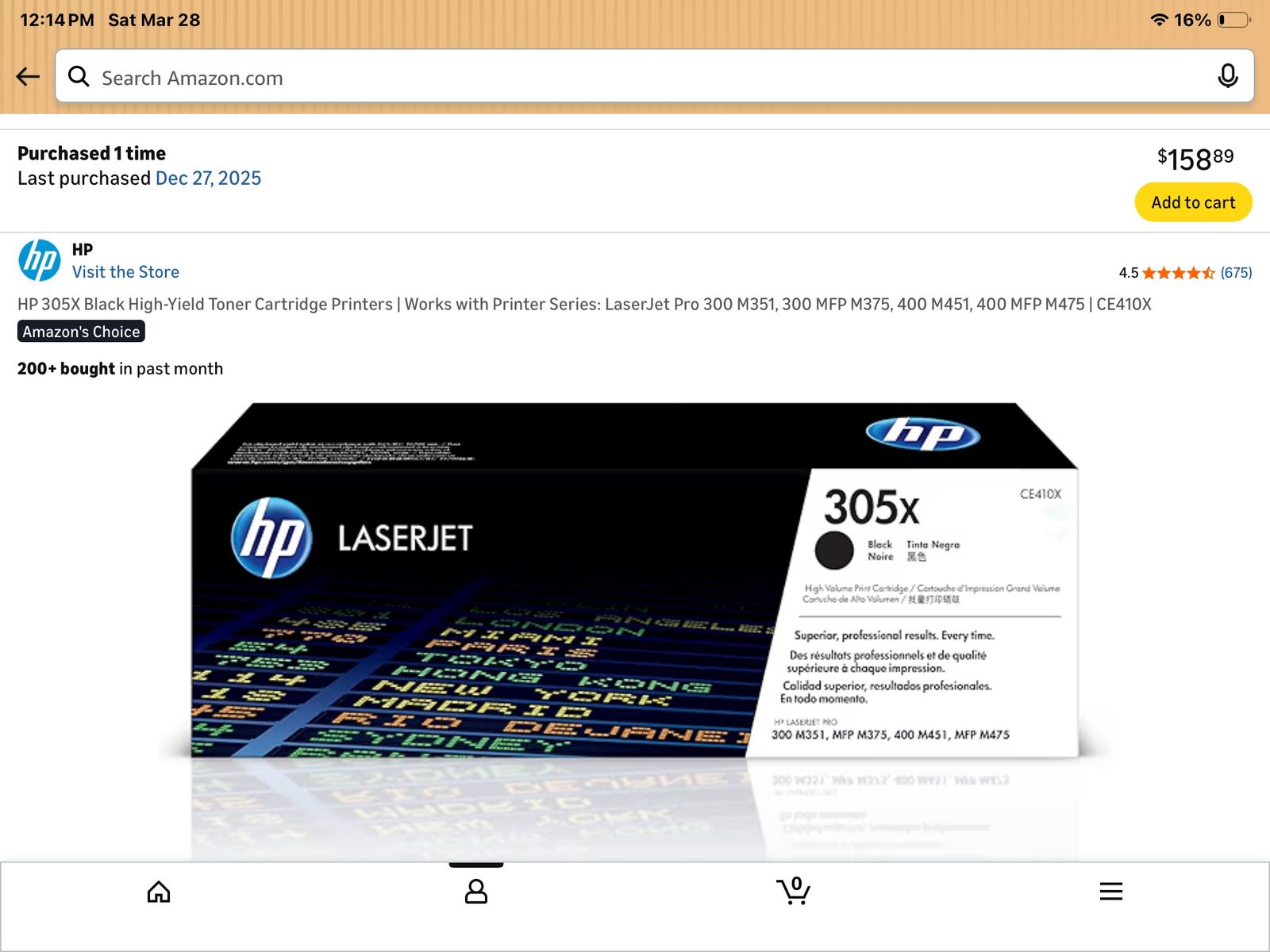 VenmoPurchased these genuine HP toner cartridges for my HP Laser Jet Pro 400 Color M451dn and the printer stopped feeding paper. Needless to say, I took it to two different print shops and they could not repair it. Now I am stuck with brand new toner cartridges totaling $775 and a printer that does not work. I purchased a new HP laser printer and I am taking a huge loss on these brand new toner cartridges for the old one. I’m hoping someone can use the brand new toner cartridges. The printer is available at no extra charge if you wanted to fix it or use it for parts.