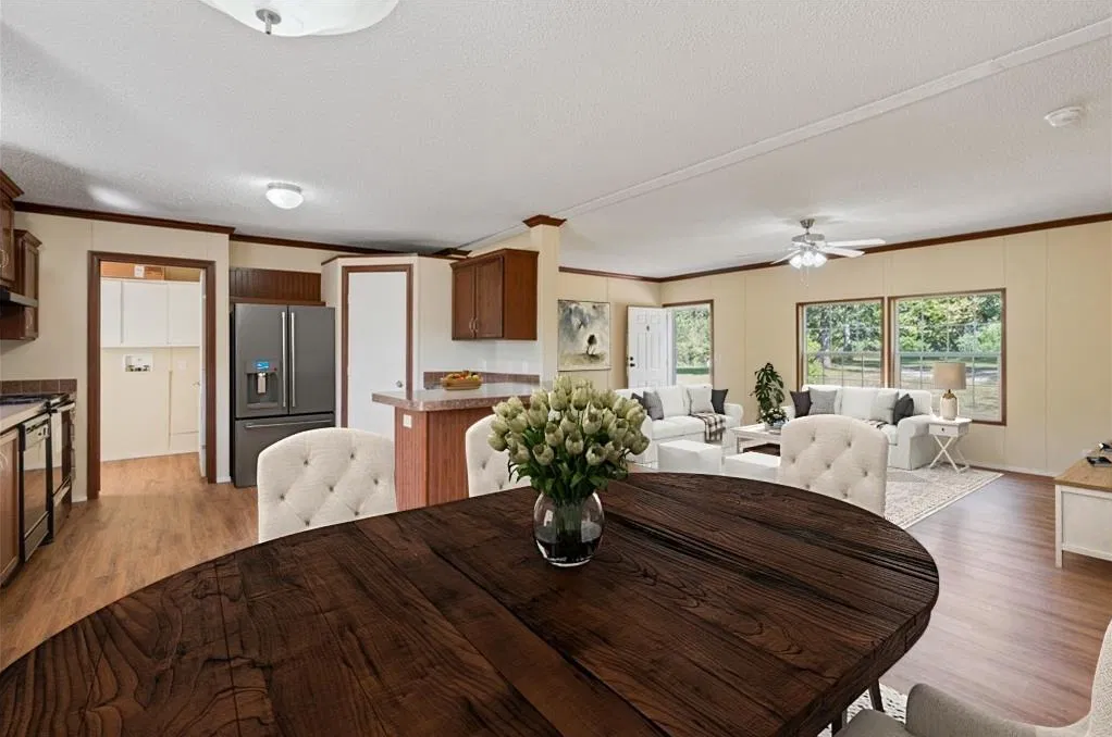 Dreaming of wide-open spaces - This is your chance! This charming 3 bed, 2 bath manufactured home sits on a cozy slice of rural Missouri heaven on 4 acres m/l —just 1 mile off blacktop, but a world away from the hustle. Tucked at the end of a dead-end road and surrounded by woods, it's the kind of quiet retreat you are searching for. Enjoy morning coffee, evening sunsets, and the calm that only country living can bring. Inside, the easy-flow open floor plan makes everyday living simple and inviting—perfect for gathering with family or hosting friends. If you've been waiting for that hidden gem with space, serenity, and a better price… this might just be the one!