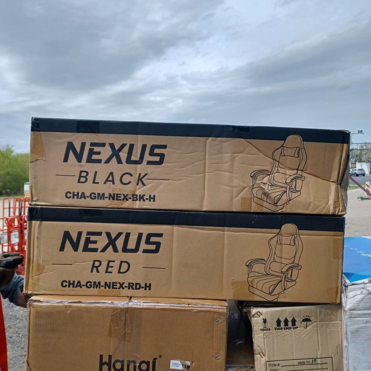 N-GEN gaming chair with footrest, lumbar support, high back, height adjustment, ergonomic comfy leather computer desk chair black and red available one of each brand new any questions please message me