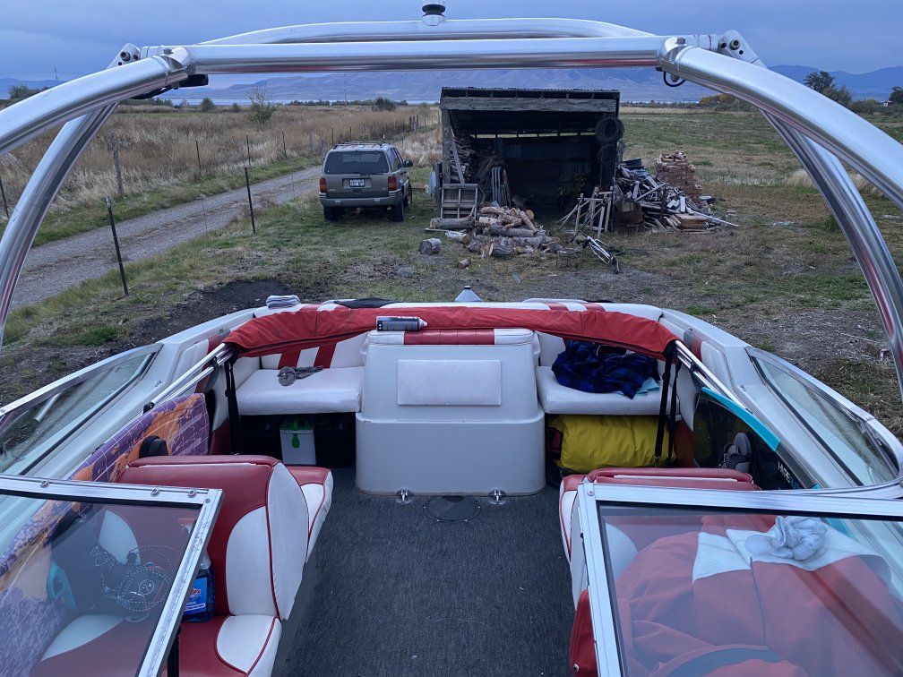 motivated seller, make me an offer! Perfect boat to do a little bit of everything, holds 8 people ski, wakeboard, tube, whatever you wanna do. It’s got a fresh motor with about 100 hours, and an oil change with about a half hour on it, was winterized properly and is ready for another great summer, has a little wear and tear on the bow upholstery, the rear has been redone. HMU with any questions. I’m only selling because I want to get a nicer one, it comes with tons of gear $6000 obo