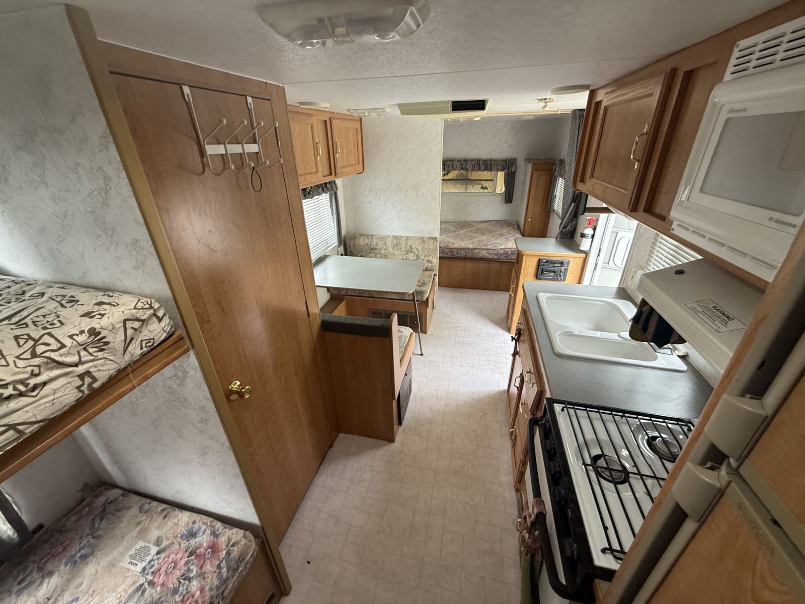 Zelle2001 NoMad 24ft Sleeps 6 comfortably Everything works as it should Brand new awning Fridge,microwave,oven and stove Top All In Good working condition A/c blows Cold and Heater is Good as well Private Queen Room And Back Bunks dinette converts into a bed Half ton Towable