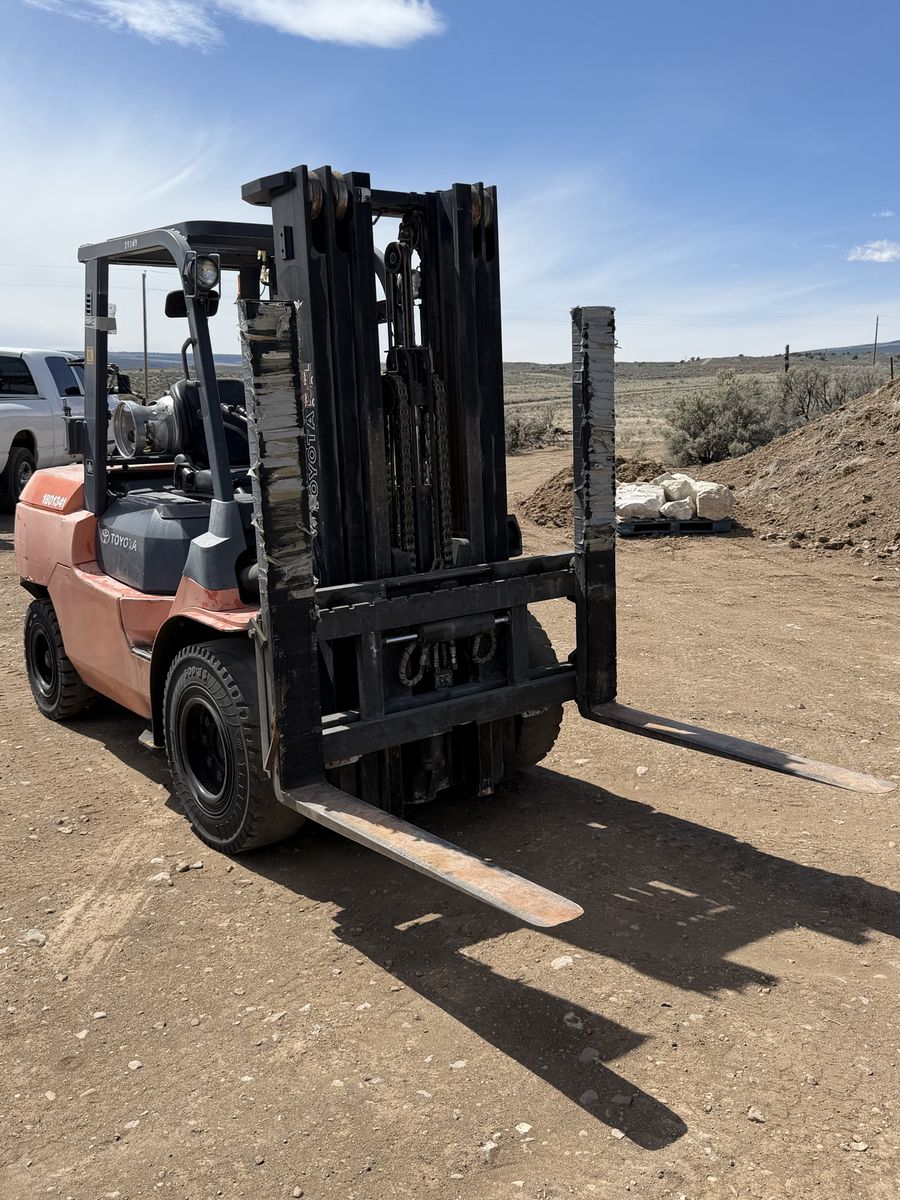 Toyota 7FGU45 8,500 lbs capacity @ 24” load center Triple stage mast 187” max lift height Side shifter / 48” forks Propane Hours: 7,127 Fully serviced Solid pneumatic tires