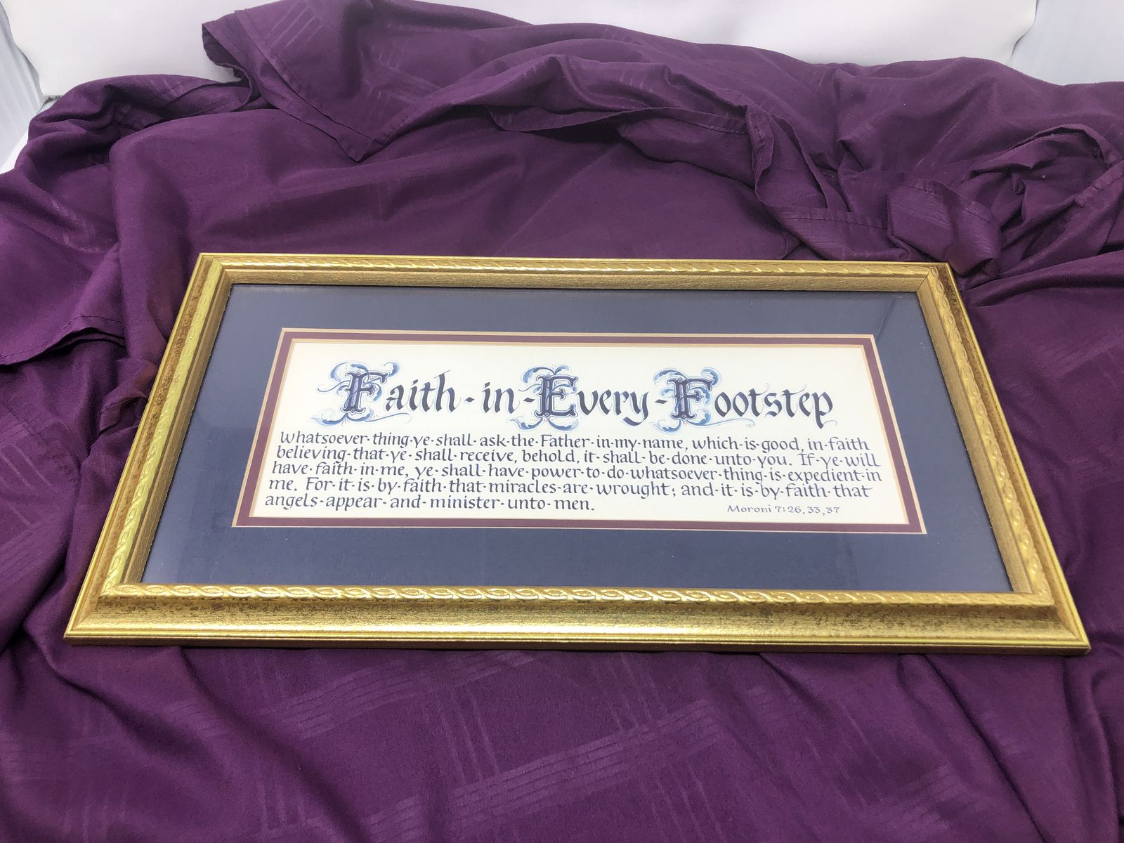 VenmoBeautifully framed religious calligraphy featuring the inspiring message "Faith in Every Footstep." The artwork includes the scriptural text from Moroni 7:26, 33, and 37.