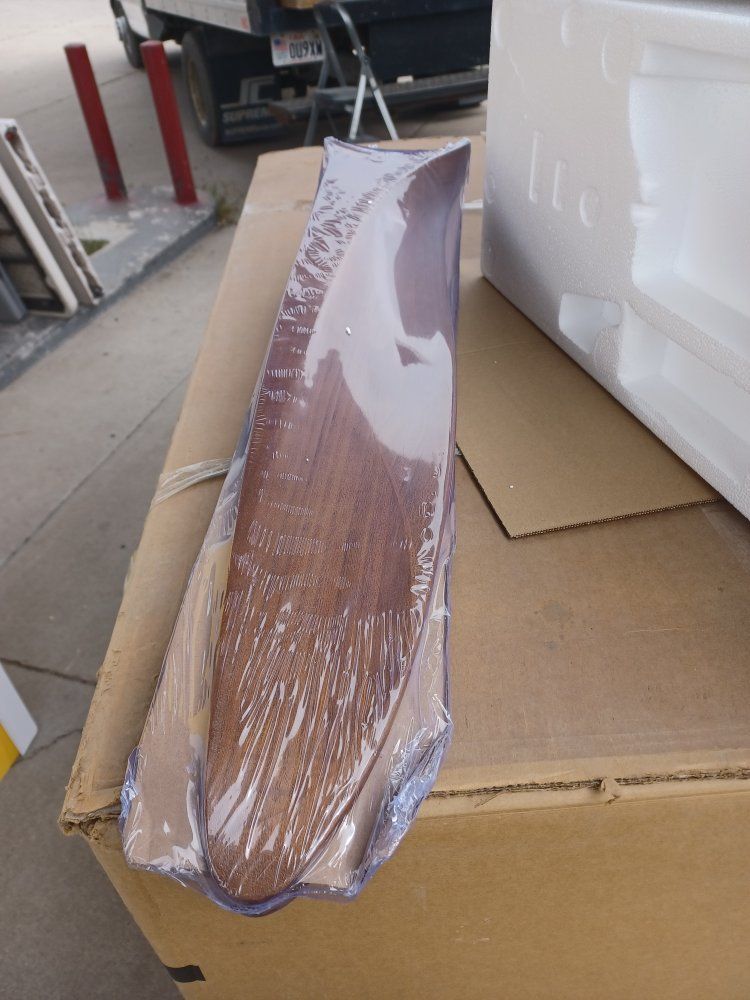 60 inch black with Walnut blades LED propeller ceiling fan with light and remote control included, three blade brand new any questions please message me