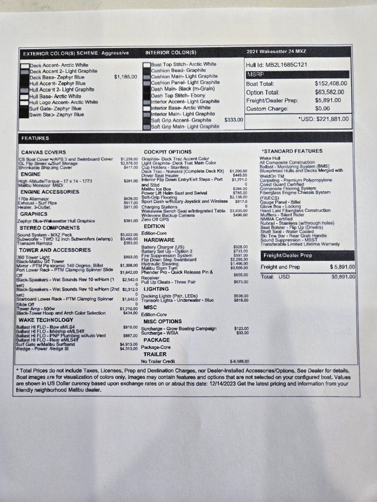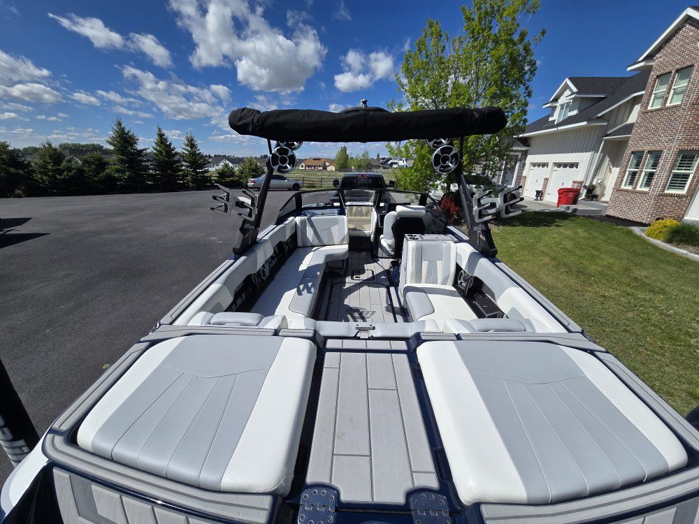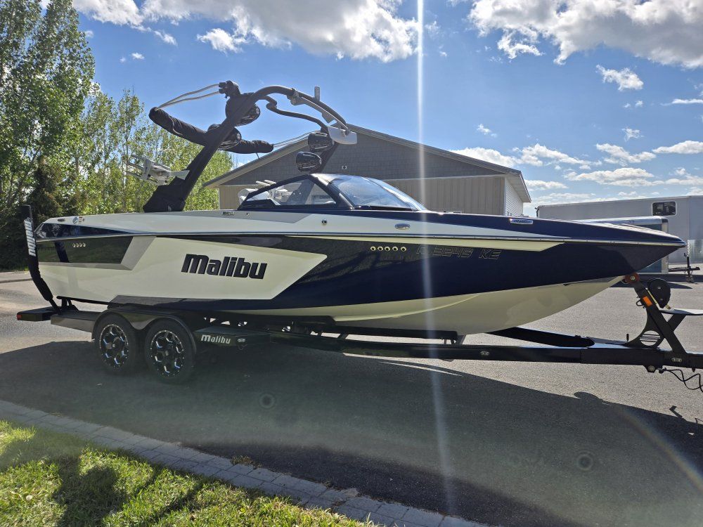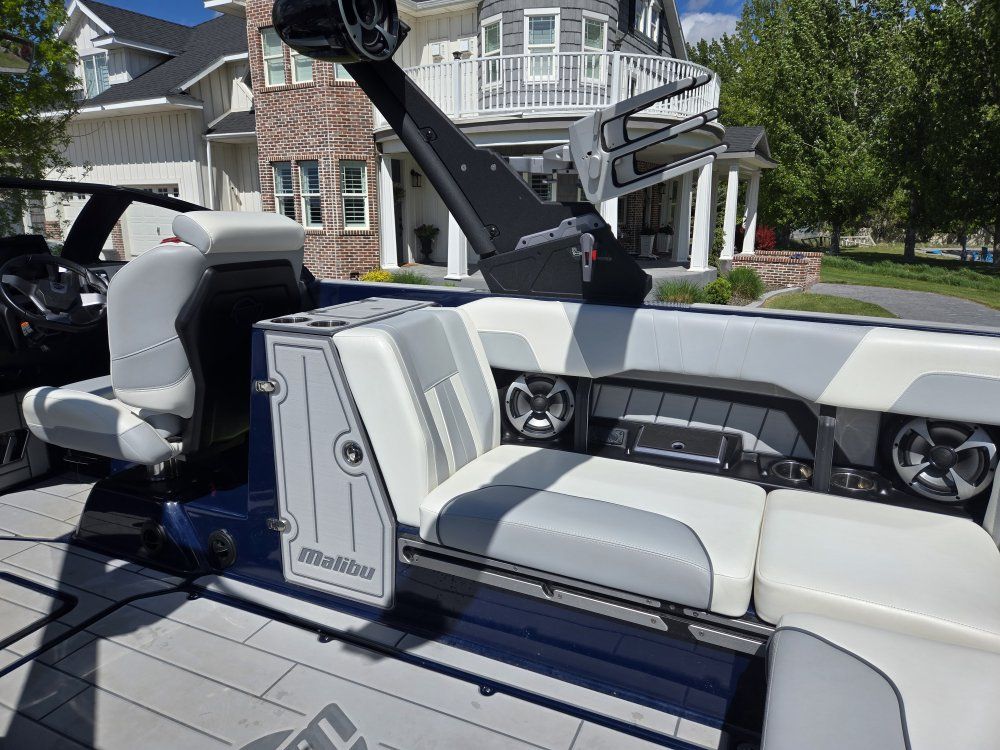Immaculate 2021 24 MXZ, just serviced at the Malibu dealer and ready for the season. Only 210 HOURS. M6Di Motor with high altitude prop, all the power you will ever need, creates massive waves. Tri color color gel coat New interior design for 2021 Rear thrusters Tons of seating in the industries largest picklefork bow seats 17 comfortably Tower folding mirror, surfband wristband. Power wedge 3 with surfgate 3 Wireless chargers, rear stereo controls. Soft grip flooring all over the boat, power lift driver seat, cool touch vinyl clamping boards racks, insane 3 amp 2 sub upgraded stereo system with tons of interior and exterior lighting and speakers. Fold down swim step. Upgraded oversized Bimini, boat and rear platform covers. High flow ballast, custom trailer XO rims and nearly new