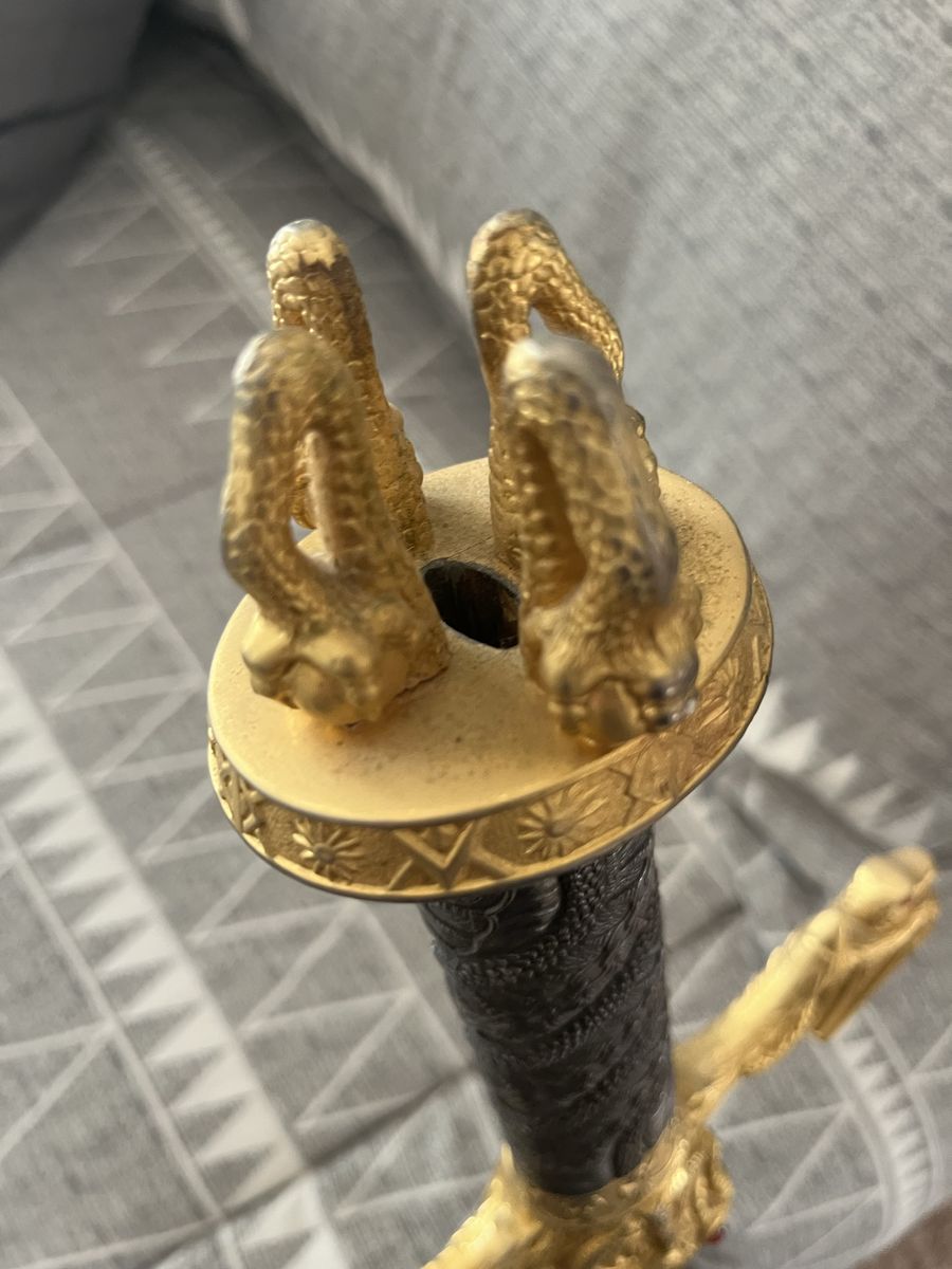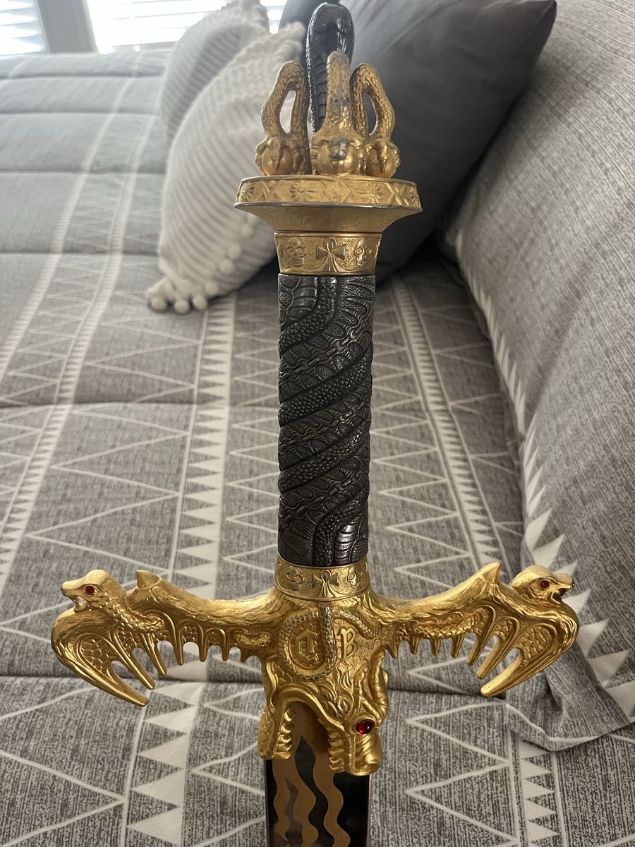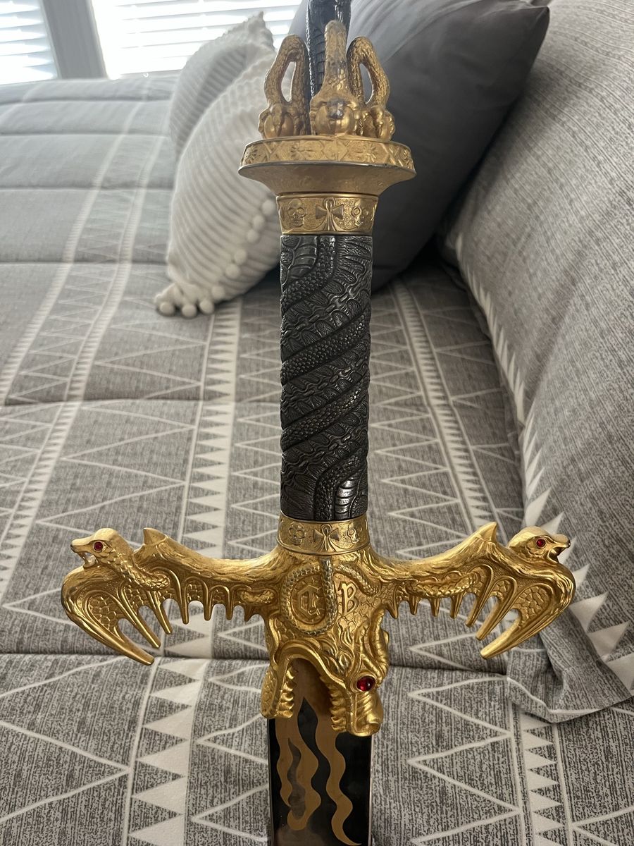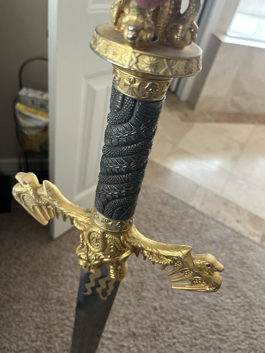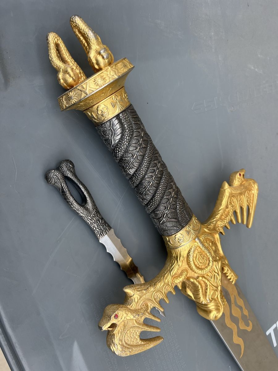 Dragon Flame sword with the dagger from Spain. With a detachable dagger, see pictures for more details 48 inches long, 2 inches and a quarter wide at its widest point, the dagger is 8 inches long