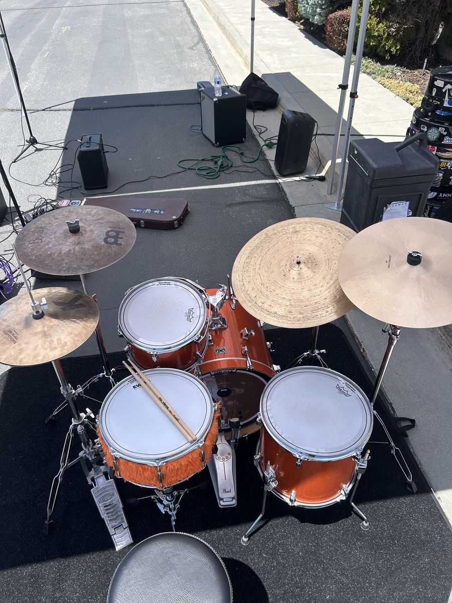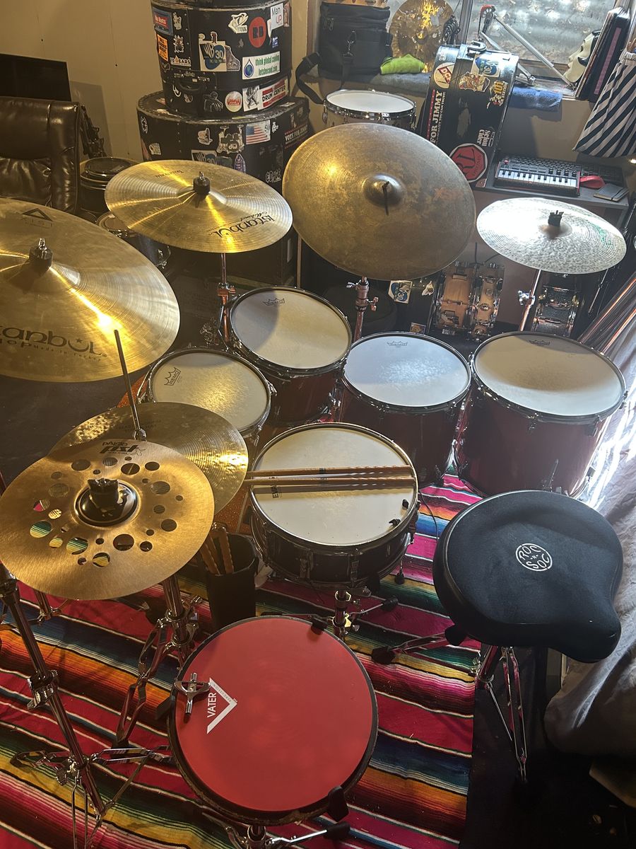 ApplePayOrange Sparkle Tama Superstar Classic 5 piece. No stands, cymbals, hardware, or snare is included. This is a shell pack for the 10x8, 12x9, 14x12, 16x14, 20x18. This kit has gigged and seen many stages but the wear does not reflect that. I cared for this kit very well, all parts are original, and there are is no notable damage on any of the drums other than where the bass drum pedal clamps to the hoop. There are minor markings just like every kit sees. The bass drum head included is the one shown in the fourth photo as I no longer have the original Tama head. All drums will come with Remo emporer coated heads that still have plenty of life left. Bass drum head is an Aquarian Superkick 2.