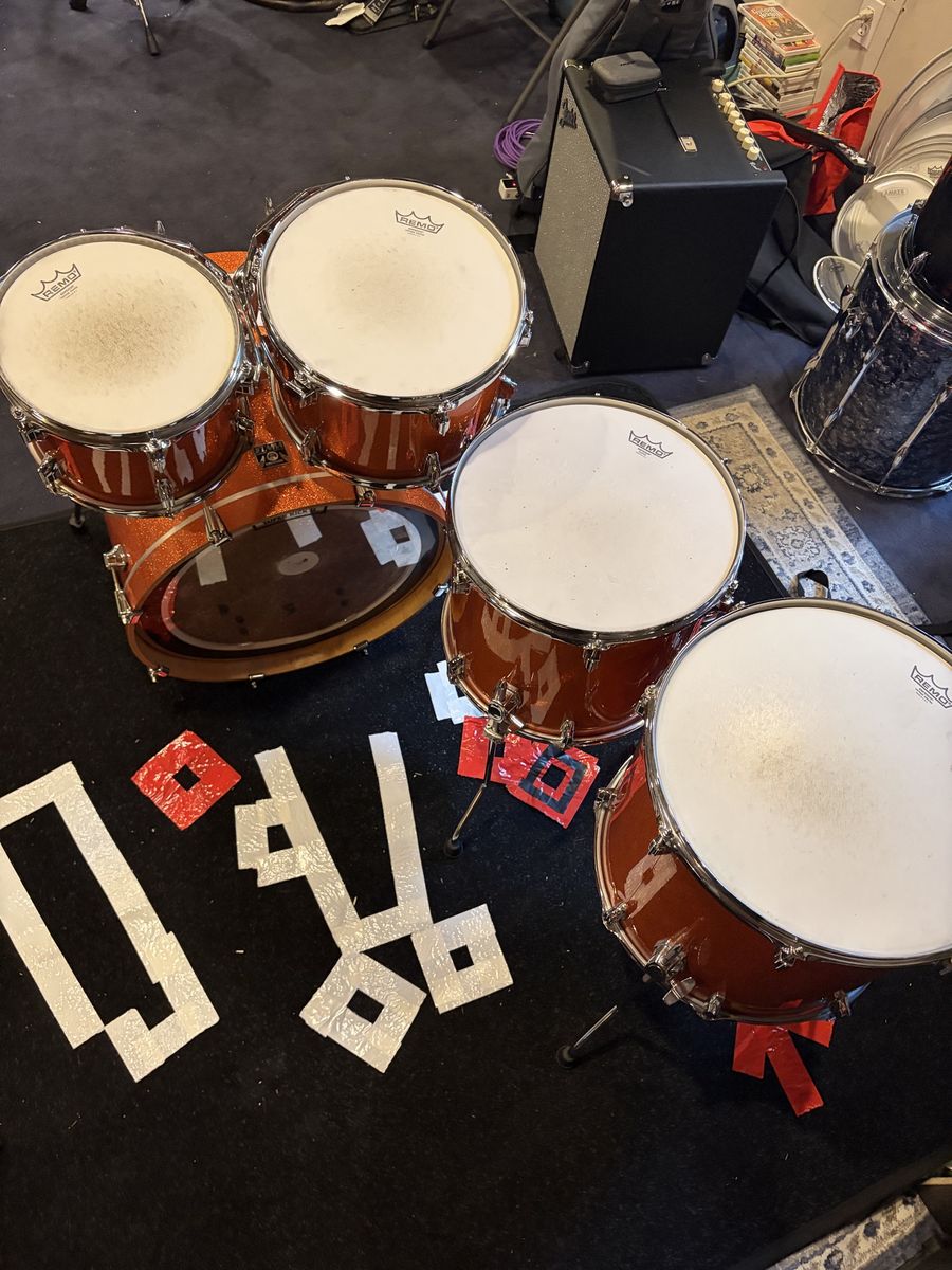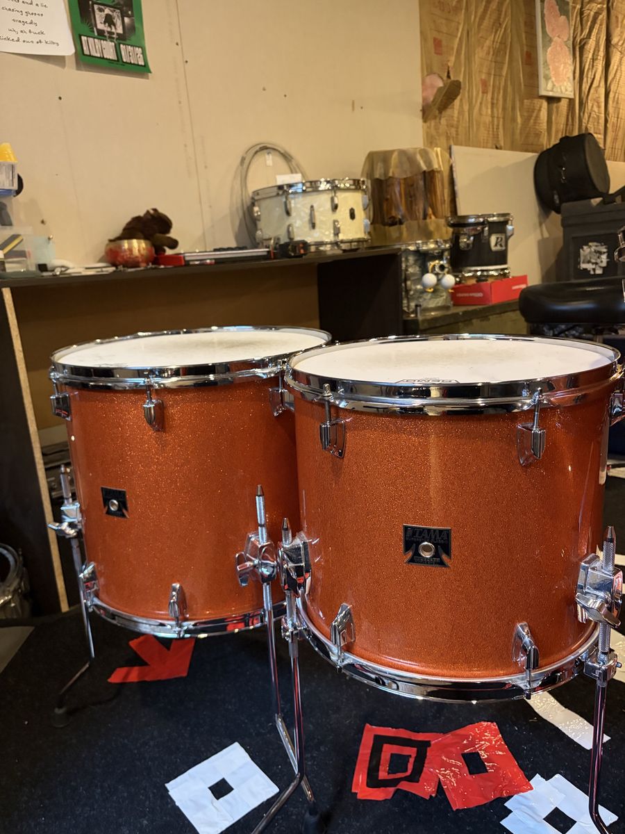 ApplePayOrange Sparkle Tama Superstar Classic 5 piece. No stands, cymbals, hardware, or snare is included. This is a shell pack for the 10x8, 12x9, 14x12, 16x14, 20x18. This kit has gigged and seen many stages but the wear does not reflect that. I cared for this kit very well, all parts are original, and there are is no notable damage on any of the drums other than where the bass drum pedal clamps to the hoop. There are minor markings just like every kit sees. The bass drum head included is the one shown in the photo as I no longer have the original Tama head. All drums will come with Remo emporer coated heads that still have plenty of life left. Bass drum head is an Aquarian Superkick 2.