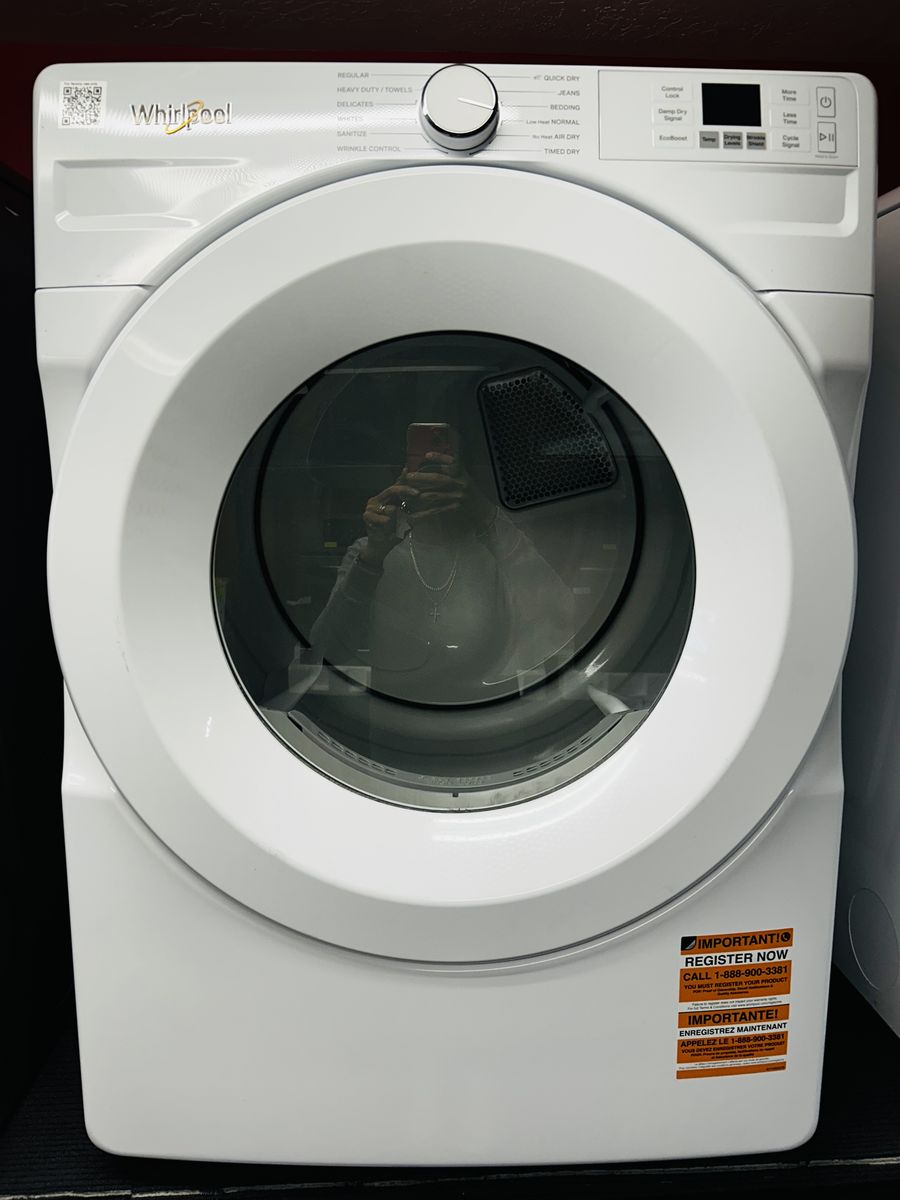 Whirlpool gas dryer super capacity heavy duty regular delicate sanitize wrinkle control quick dry jeans bedding normal air dry time dry damp dry signal eco boost wrinkle shield etc..Brand New/OpenBox. 45 day warranty, delivery/install available.