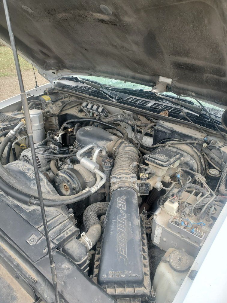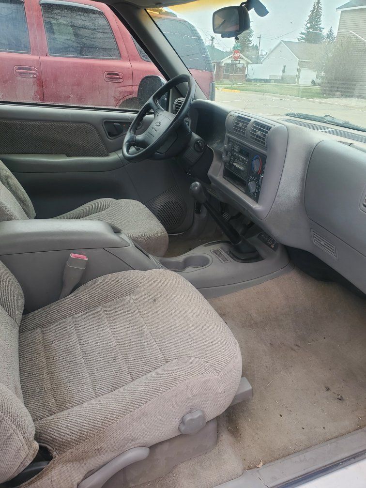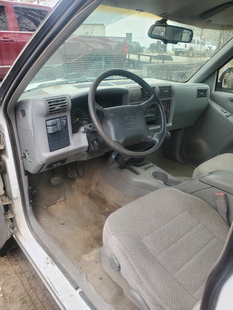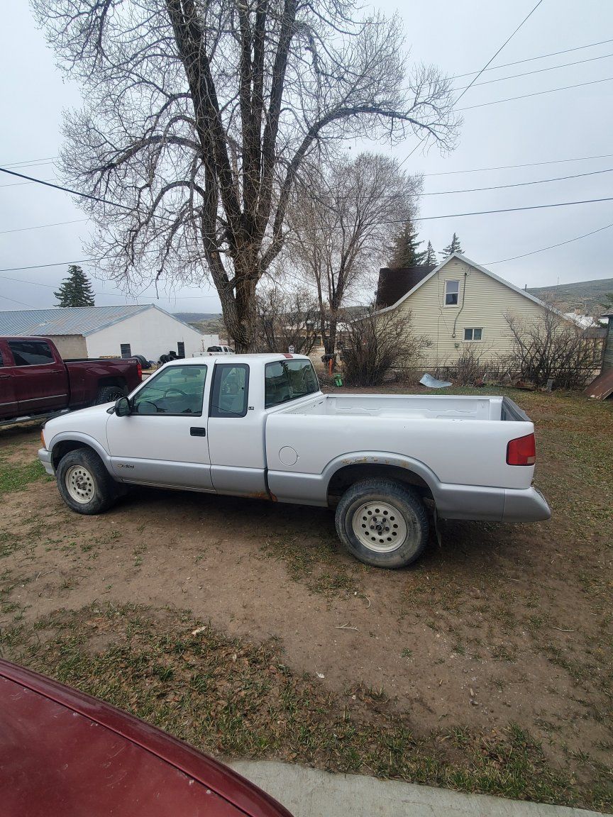 96 Chevrolet extended cab s-10 4x4 5 spd manual. 161,315 miles. Starts and runs but engine will need work. Clutch engages and feels good transmission shifts good. All original truck including the radio. Needs tires, windshield, exhaust fixed broken under truck somewhere and will need engine fixed. $1,500 obo or trade for car or jeep.