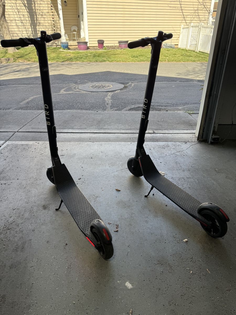 ApplePayUp for sale is a pair of Segway Bird electric scooters. Adult owned, they have been ridden very little and are in good condition. They have headlights, brake lights and even ground effects! I believe the top speed is 15 MPH, which feels fast as hell, but I have read online that you can reprogram them to go even faster!