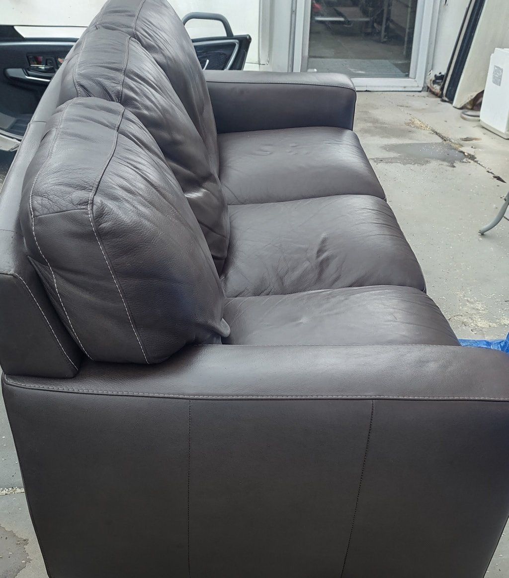 PayPalSelling a brown leather 3-seat sofa. Very comfortable with firm cushions and solid frame.
