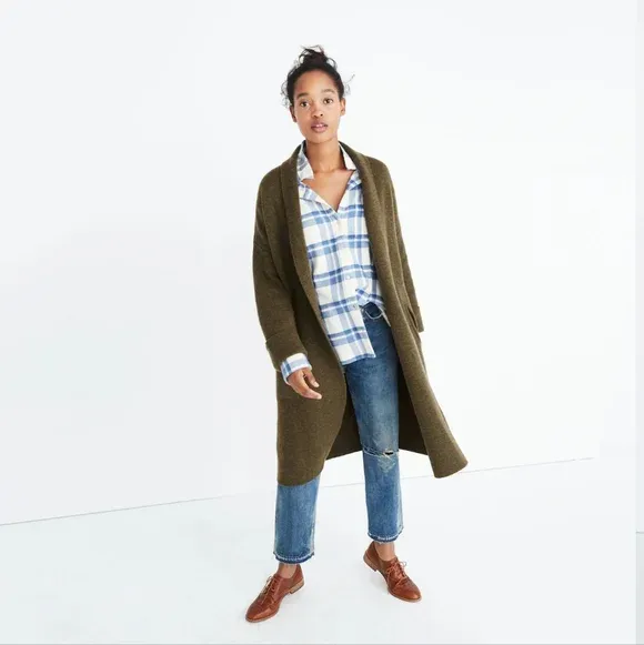 VenmoMadewell Rivington Open Front Sweater Coat Heather Elm Green Merino Wool Medium Excellent Used Condition