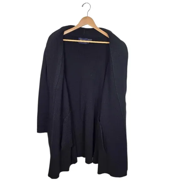 VenmoVintage Bonnie Lee Leroy Black Wool Knit Car Coat Oversized Open Front Black Excellent Used Condition - Note: Sleeve cuffs show a faint crease from prior alteration (see last photo), not noticeable when worn. No size tag - please see measurements - Fits like Women’s L–XXL depending on desired fit Oversized on S–M Relaxed on L–XL More standard fit on XXL
