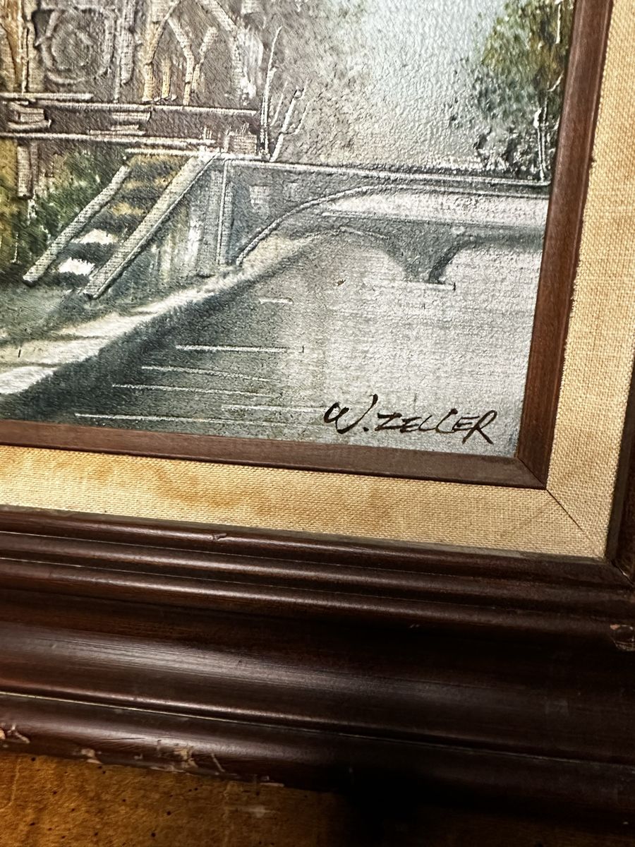 VenmoVintage framed painting of Notre Dame Cathedral in Paris, signed W. Zeller. Beautiful classic European scene in a solid wood frame.