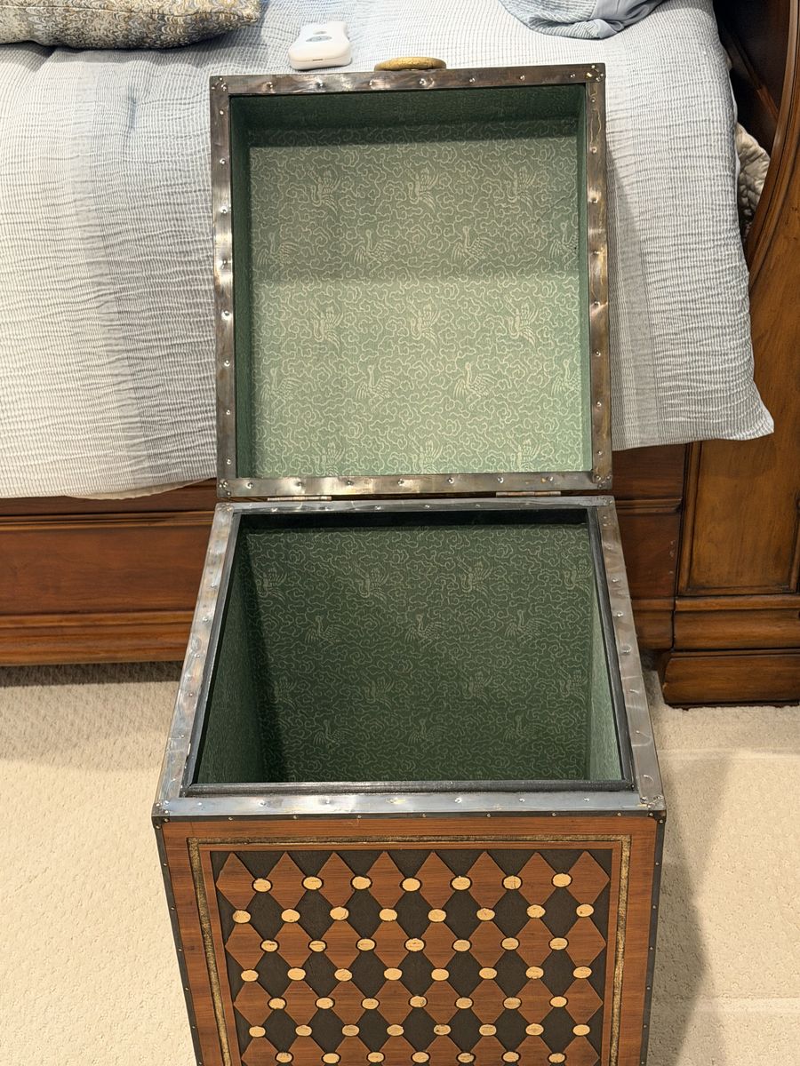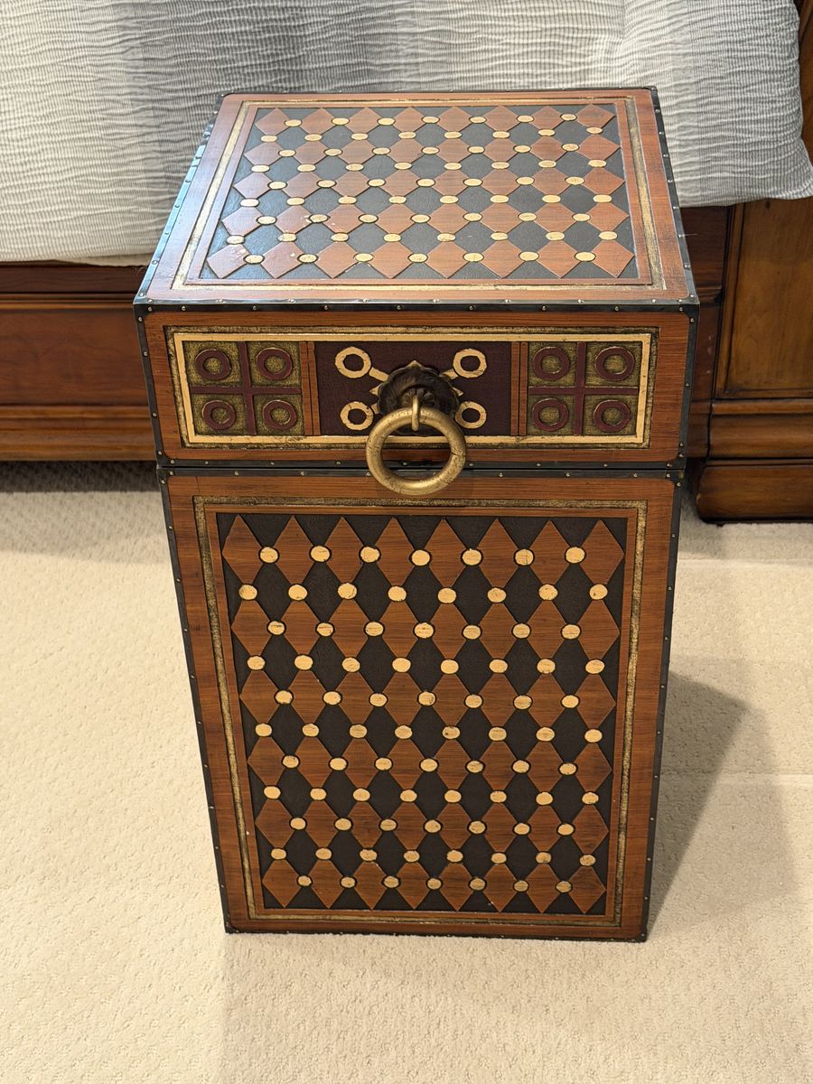 ZelleDecorative end table box. Can store games or blankets in it 36 inches tall 20x24 inches