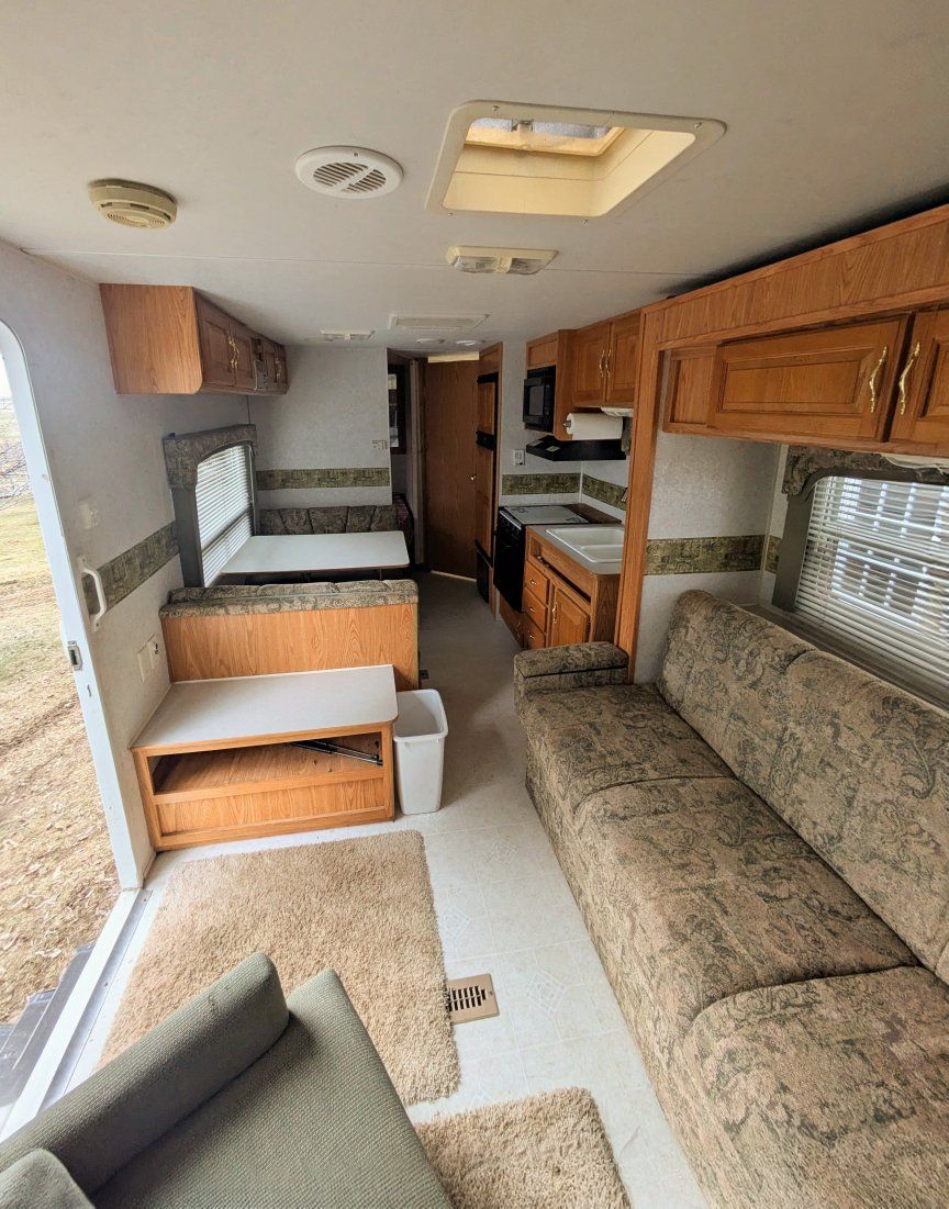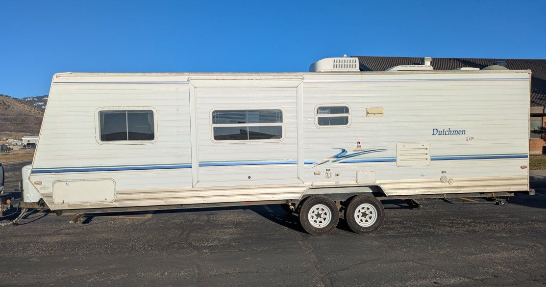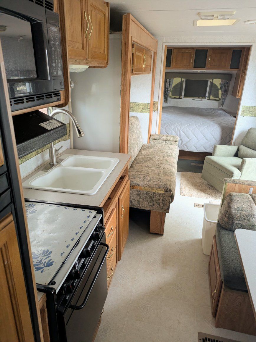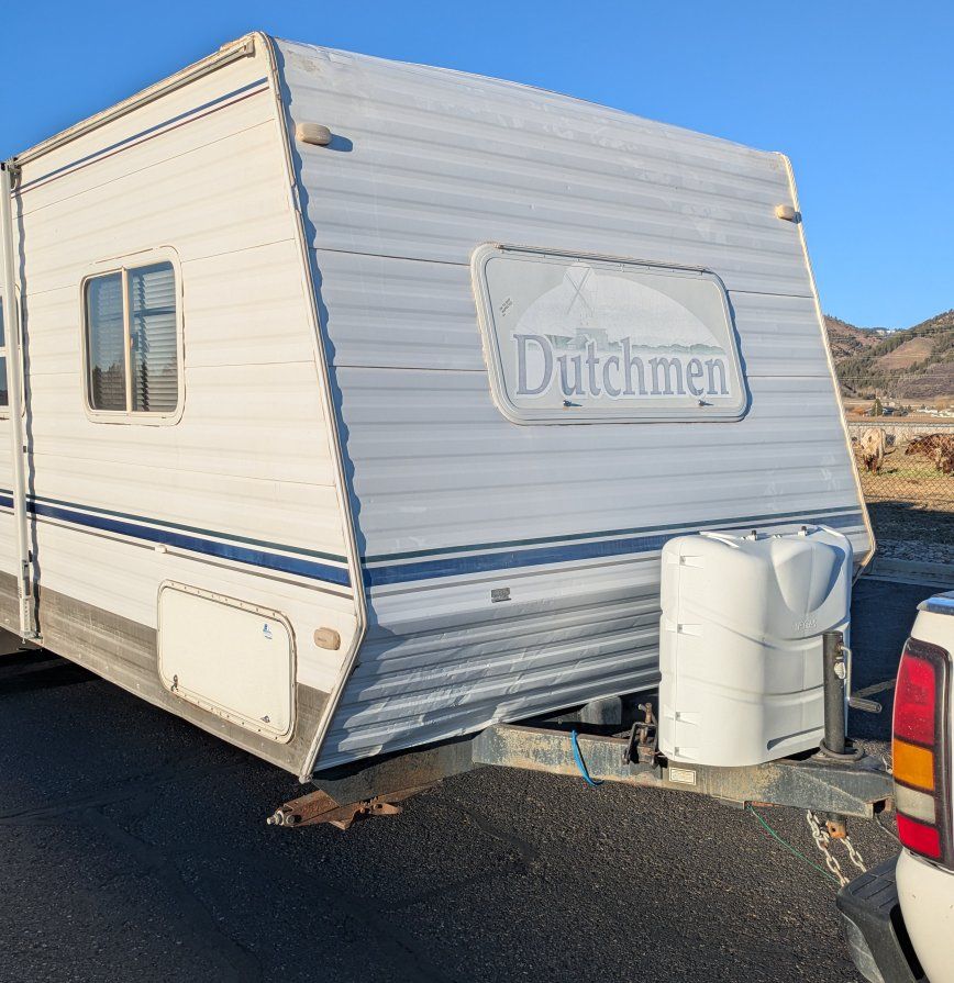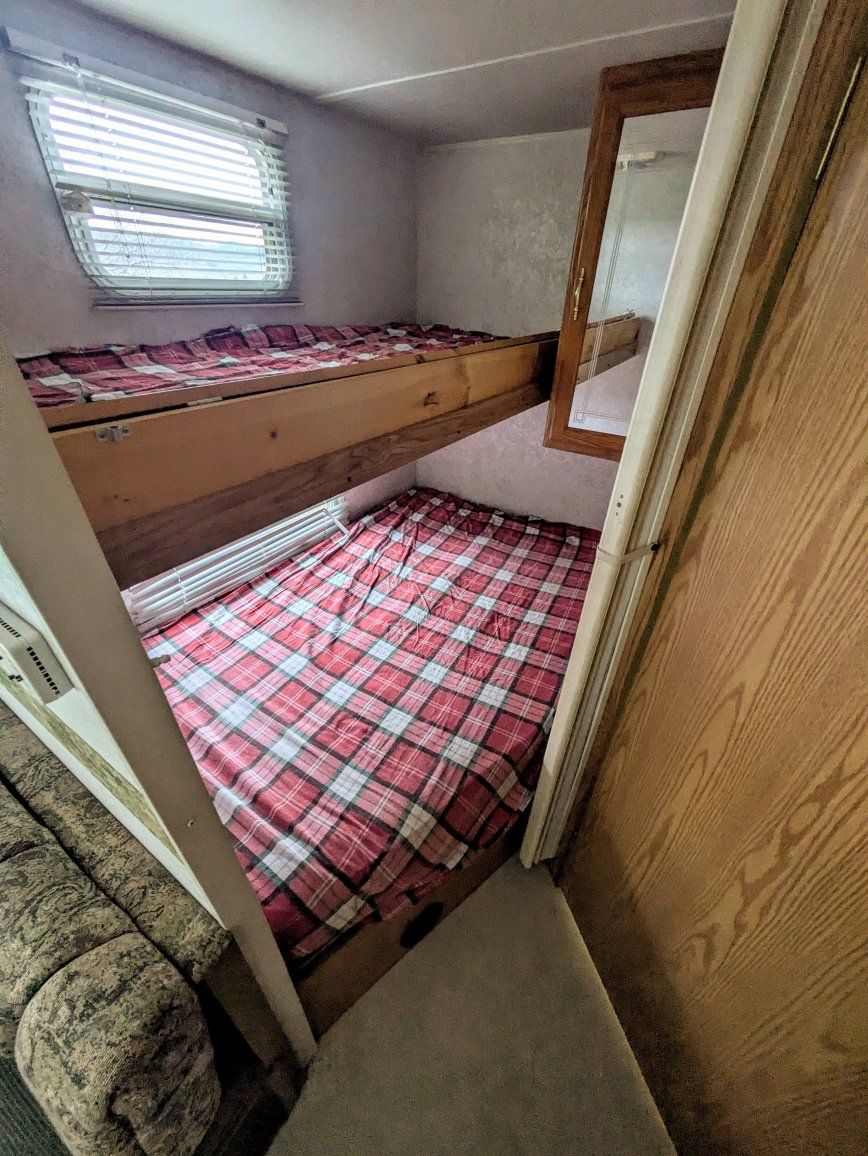 2002 Dutchman lite bunk house camp trailer. I think it's a 28-ft. 30 ft with the tongue. Sleeps 9 depending on how cozy you want to get. Furnace, fridge/freezer, oven, microwave, water heater, and air conditioner all work. It has one slide out with the couch. Mattress has been upgraded to a regular sized queen pillow top. Brand new awning last year. Tires are in good shape. Come take a look! No trades $6500 Obo