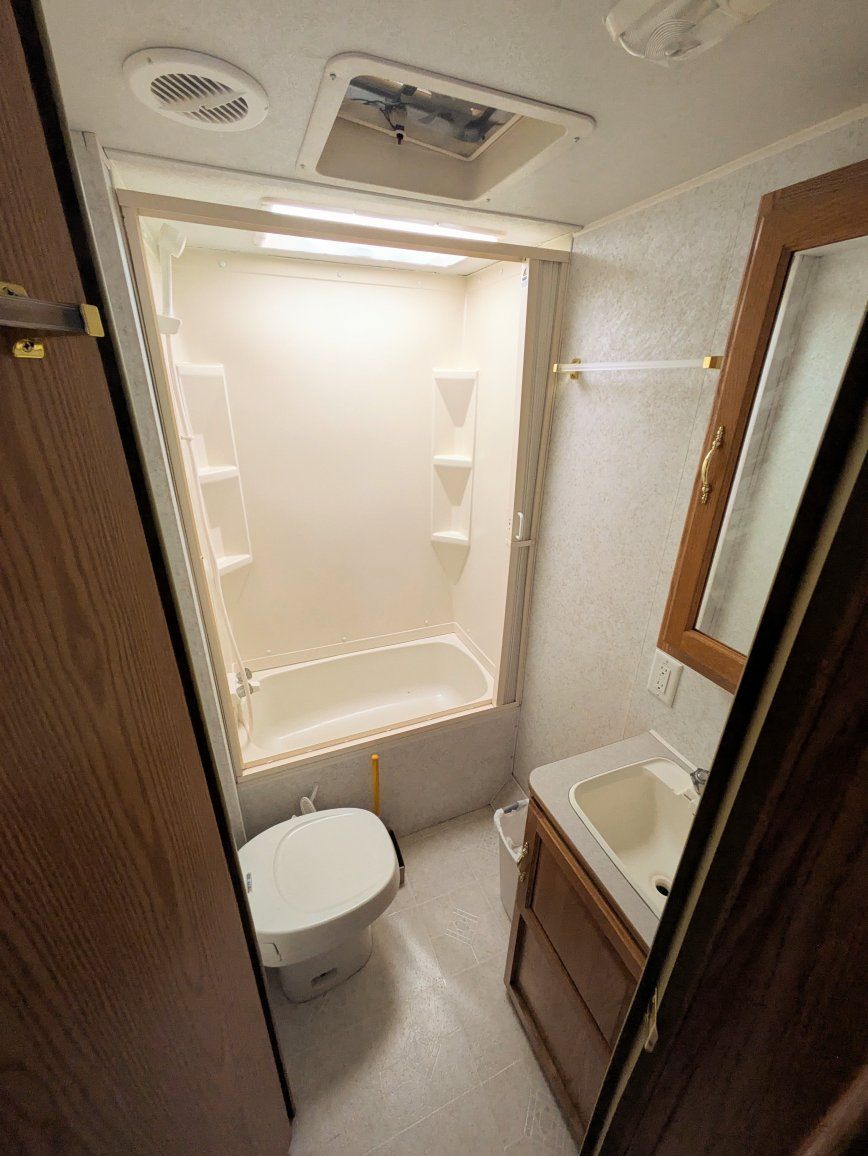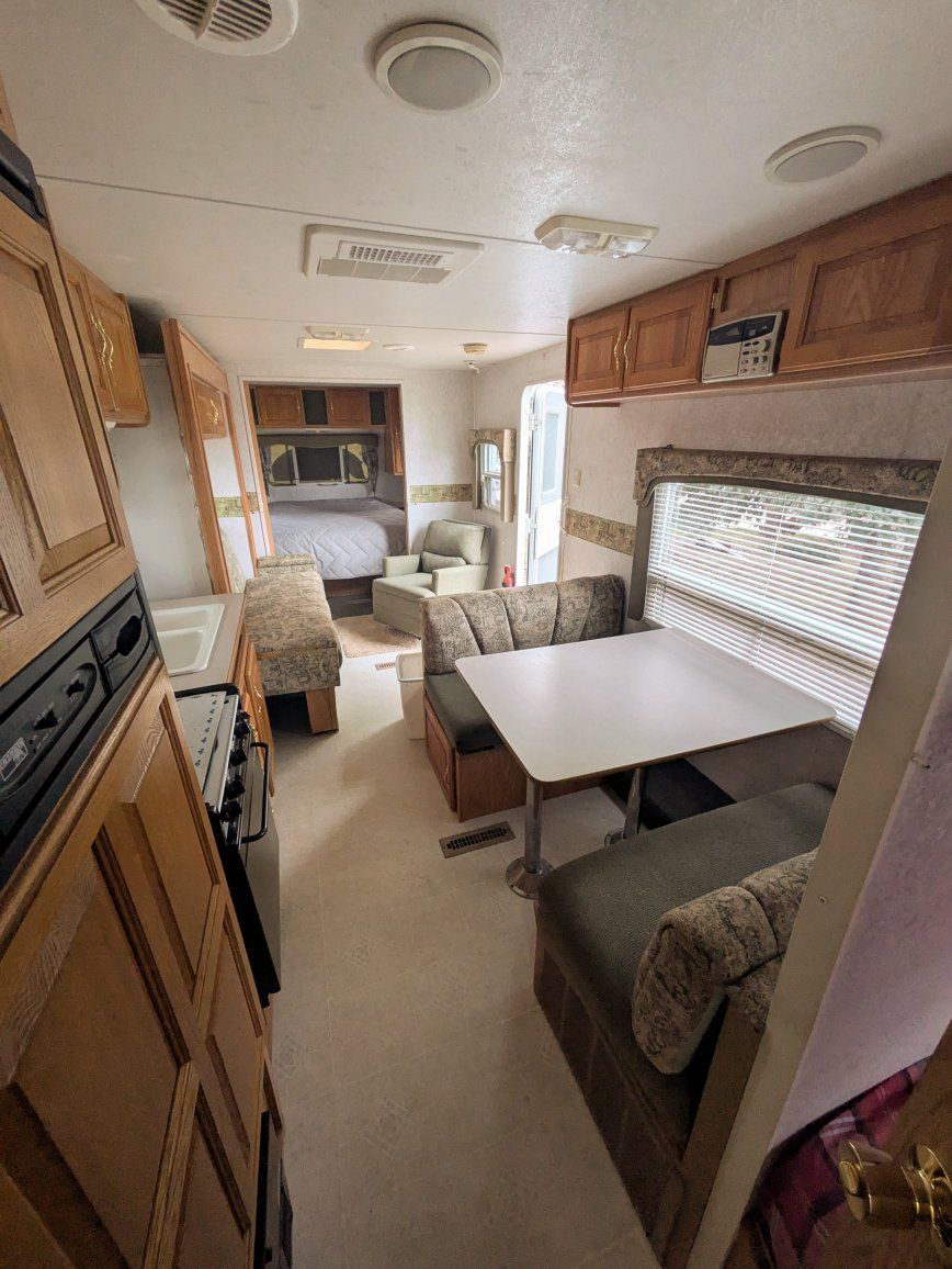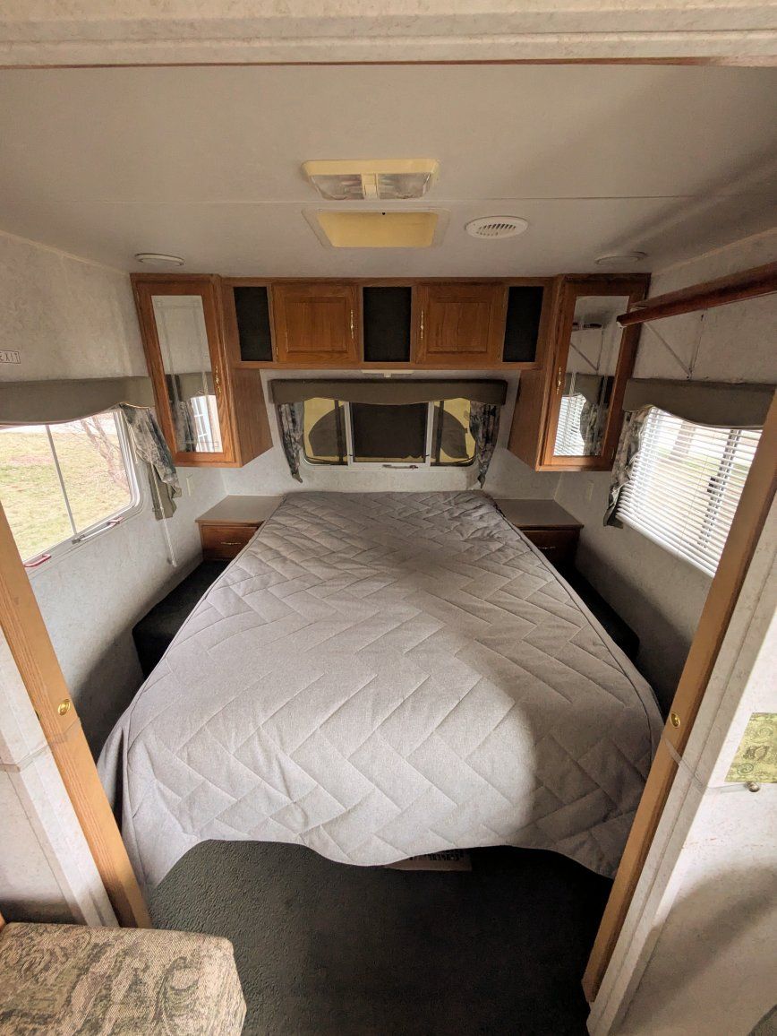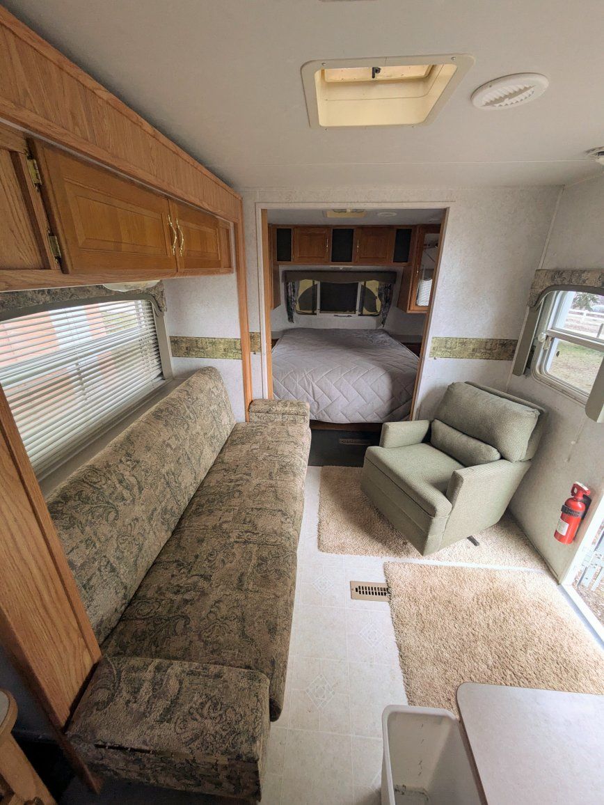 2002 Dutchman lite bunk house camp trailer. I think it's a 28-ft. 30 ft with the tongue. Sleeps 9 depending on how cozy you want to get. Furnace, fridge/freezer, oven, microwave, water heater, and air conditioner all work. It has one slide out with the couch. Mattress has been upgraded to a regular sized queen pillow top. Brand new awning last year. Tires are in good shape. Come take a look! No trades $6500 Obo