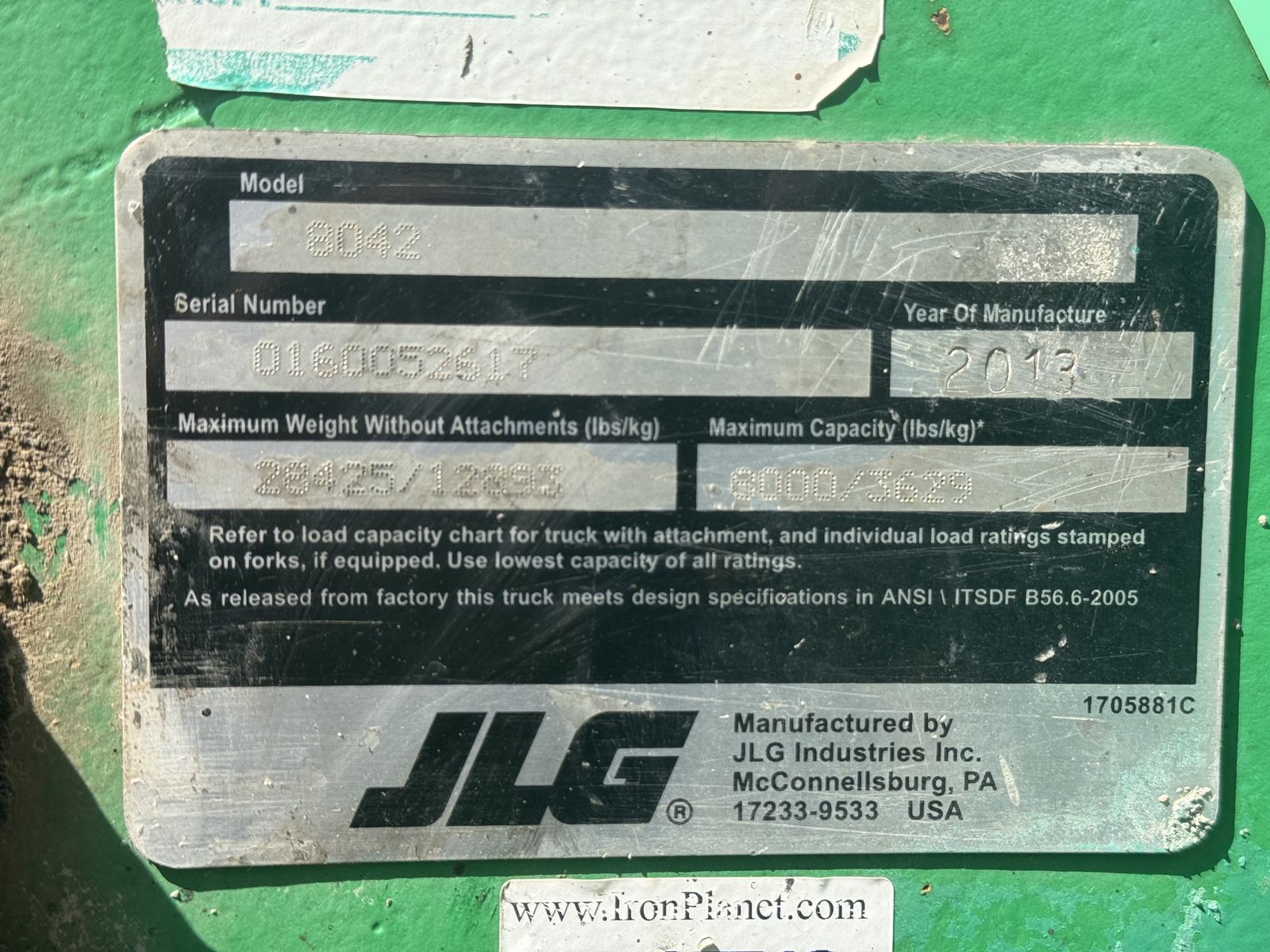 YEAR: 2013 MAKE: SKYTRAK/JLG MODEL: 8042 HOURS: 5352 TYPE: TELESCOPIC FORK LIFT MAX LIFT: 8000 LBS MAX HEIGHT: 41 FT FORK LENGTH: 4 FT
