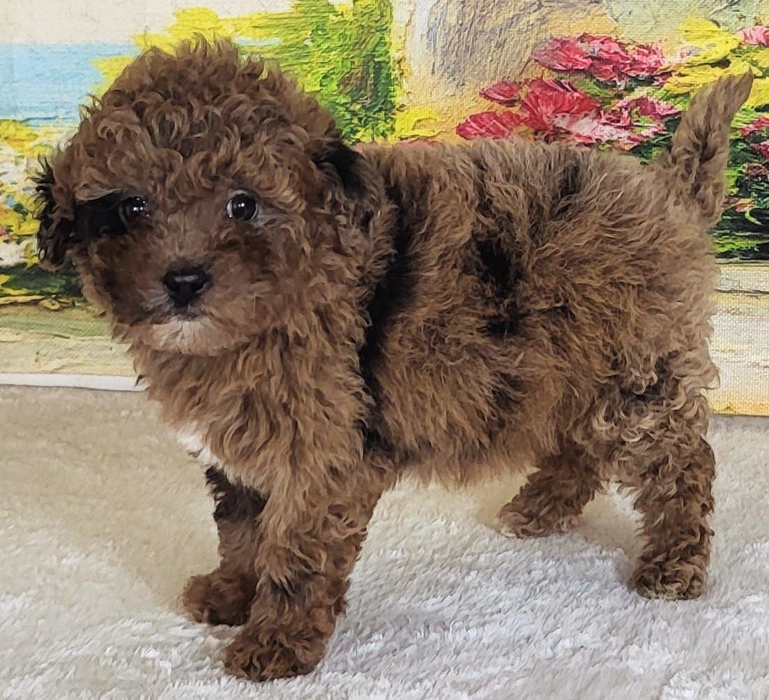 ZelleAs sweet as her name, Strawberry is a charming Micro Goldendoodle with a gentle, loving nature and an irresistibly cute appearance. She has been raised in a family environment and is well-adjusted, making her a wonderful choice for a companion, emotional support pet, or family dog.
