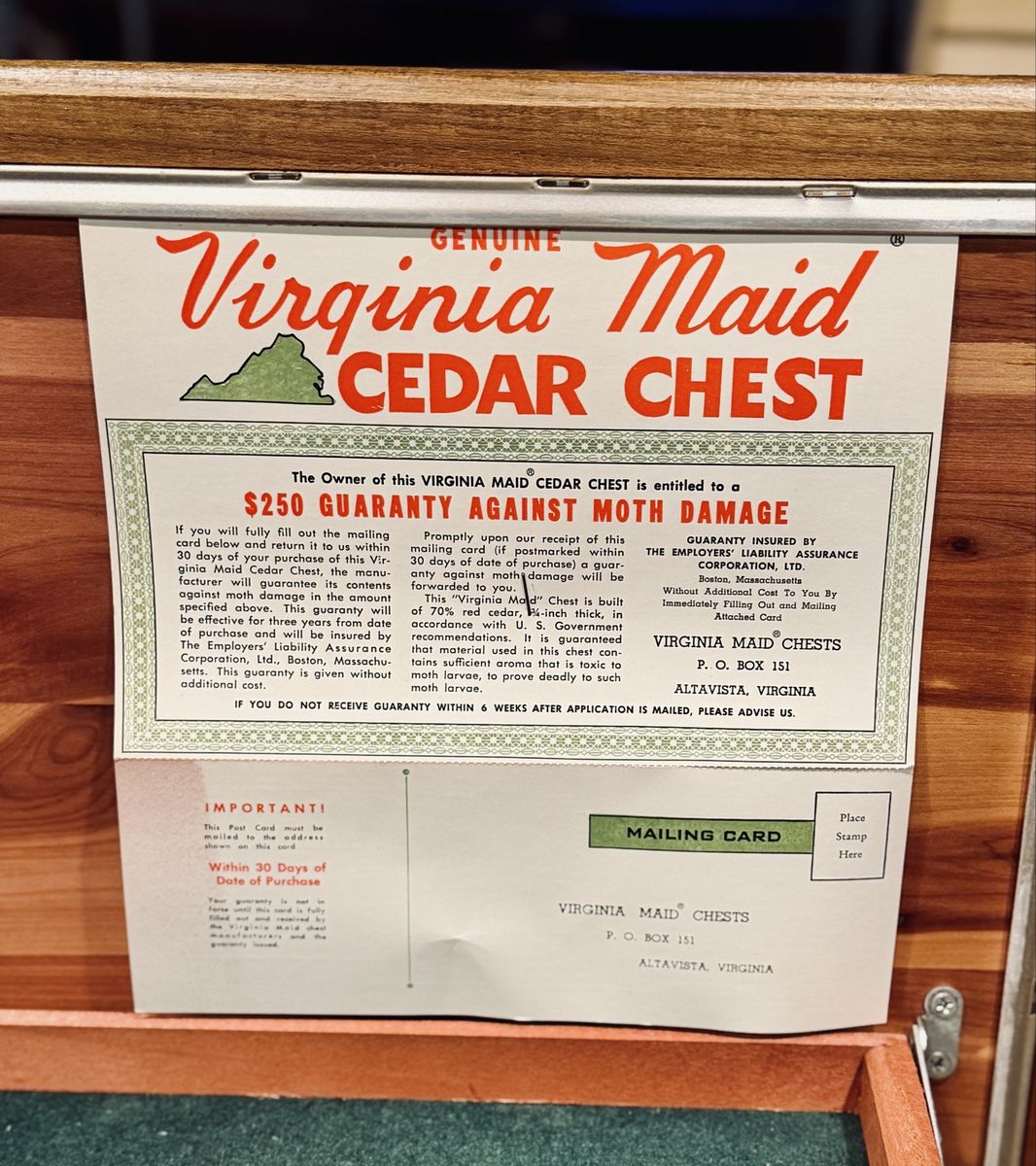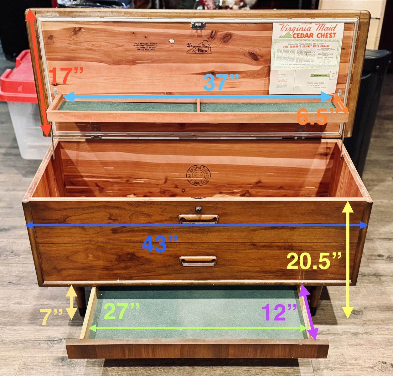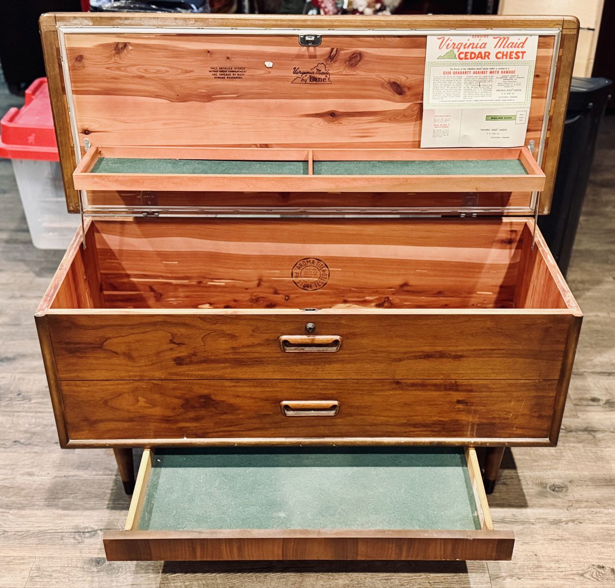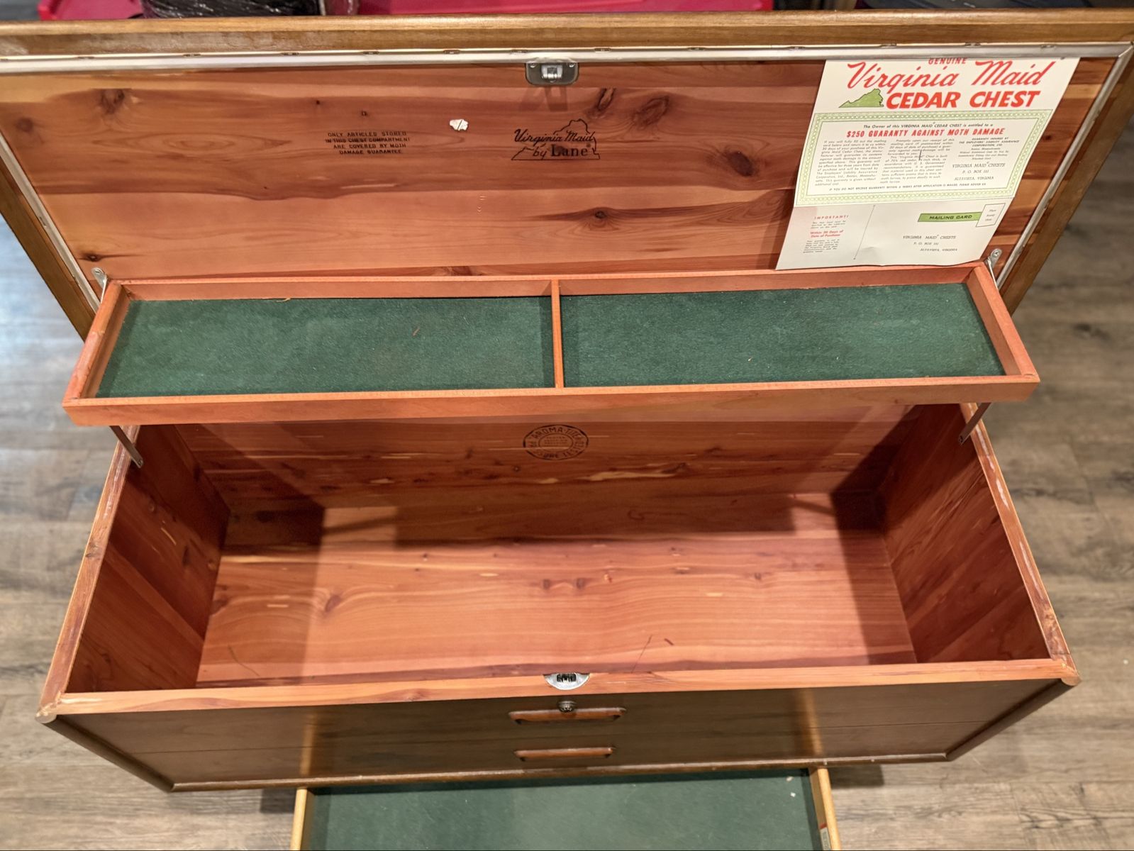VenmoVintage Lane “Virginia Maid” cedar chest in beautiful condition. Solid cedar interior with original paperwork still attached inside the lid. Style No. 9501-50.