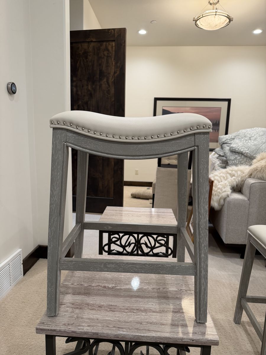 Zellelike new stools 25 Inches high ,seat 14 by 18 1/2 inches. Stools used for staging