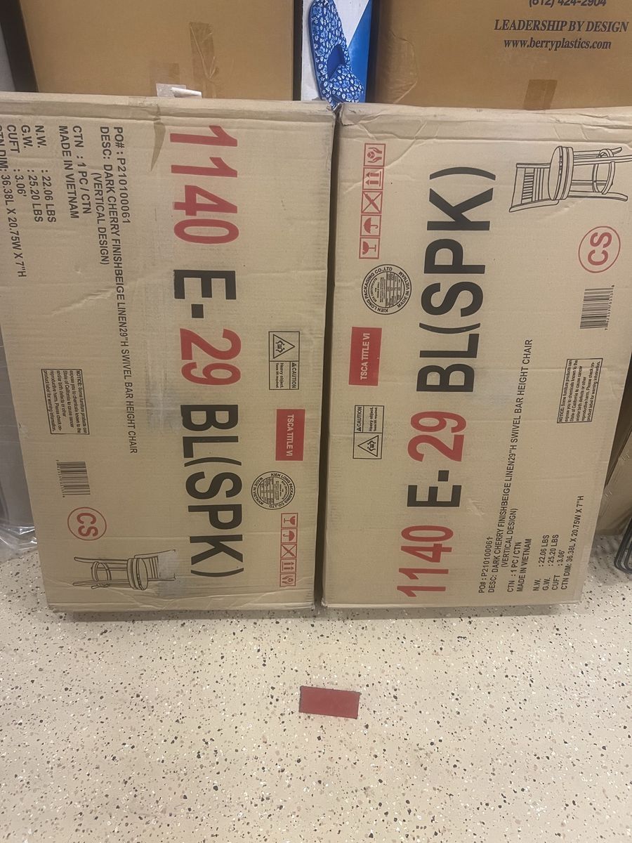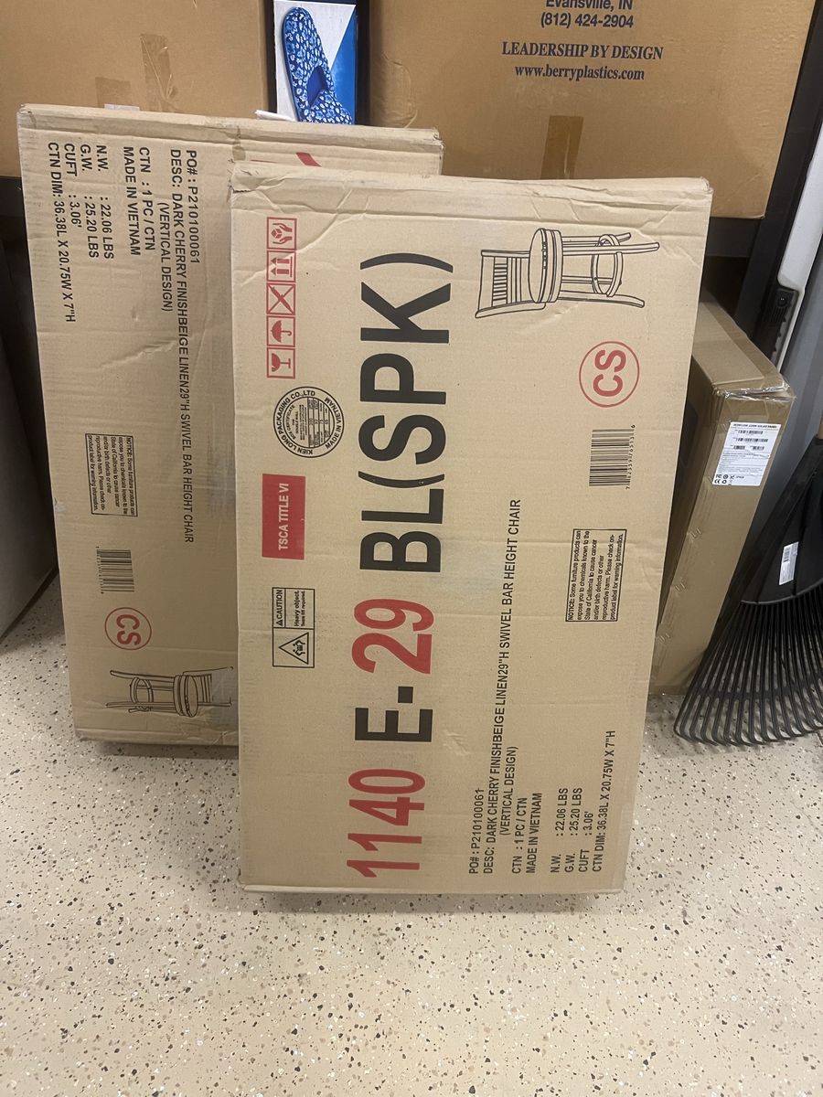 CashApp4 Bar Stools, cherry wood, with light lien seats, see details on pictured box. 2 are still in the boxes, never opened, other 2 have been put together, see pictures. All 4 bar stools for $200.0. Located in St George, Utah