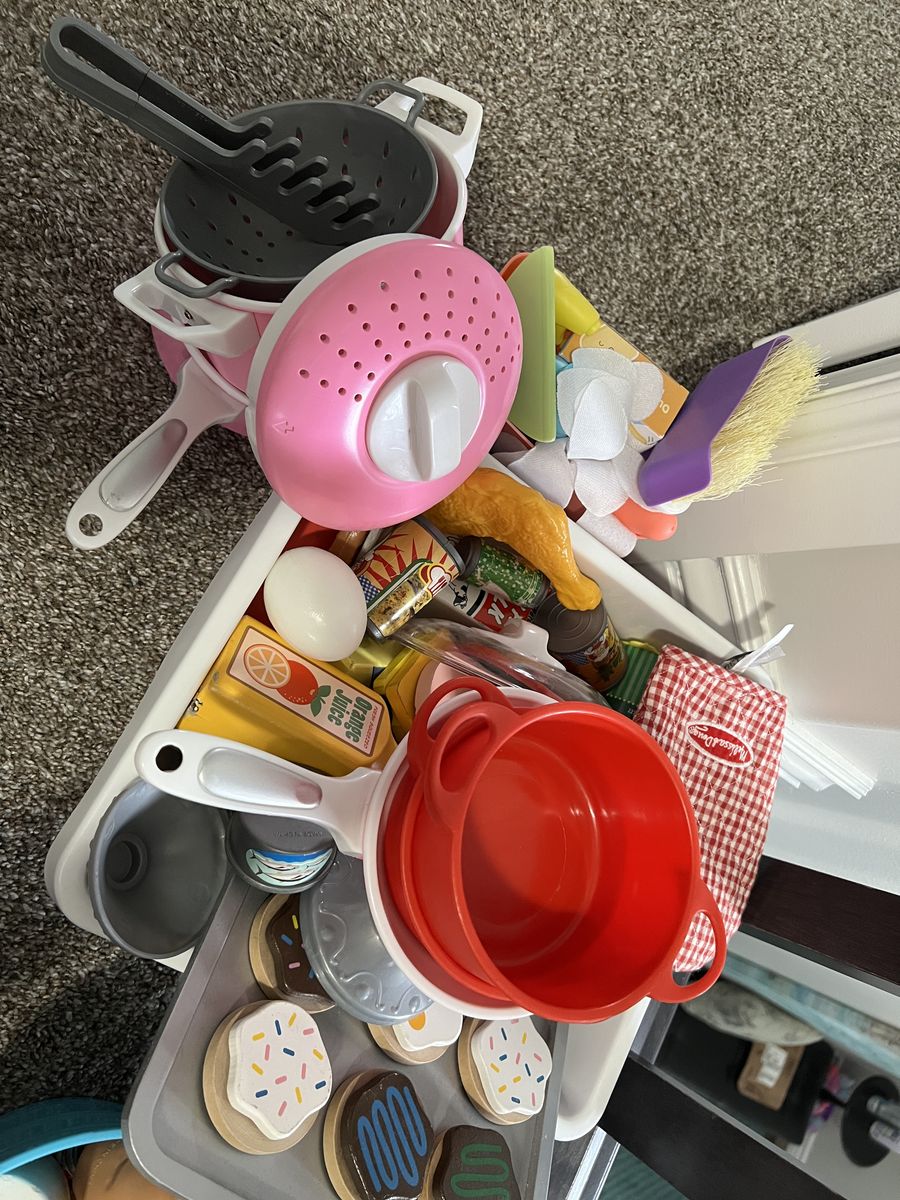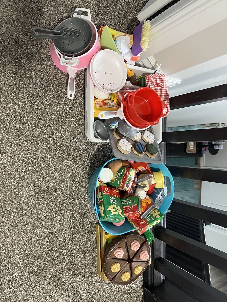 *Also, I have play food, both plastic and Melissa and Doug wood, utensils, cook wear, and a pretend cleaning kit that I can give you for an extra $30. Bringing the total to $230.